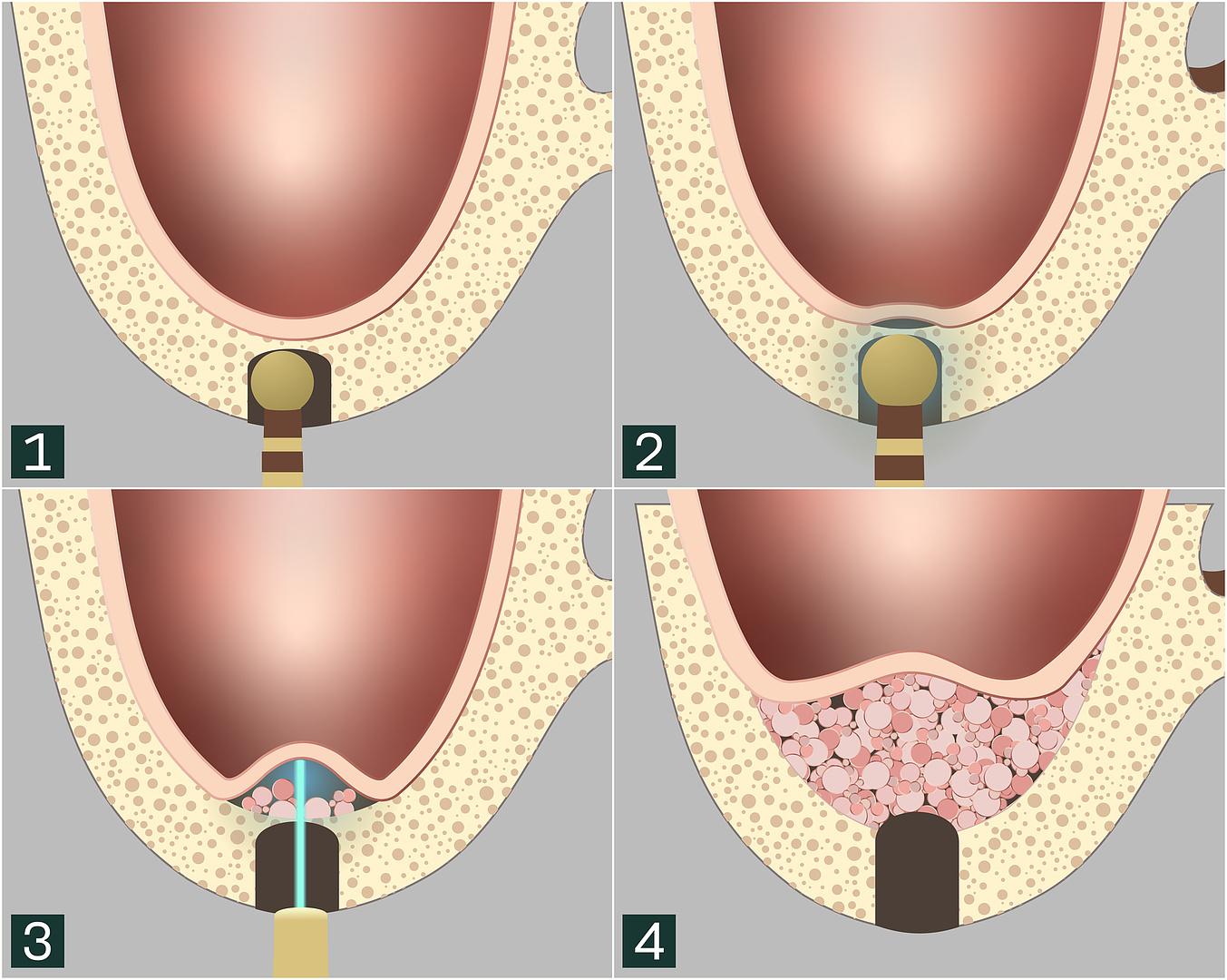 - Костная пластика (при необходимости). В зависимости от плотности и объема кости может потребоваться синус-лифтинг для создания достаточного объема костной ткани в области импланта.