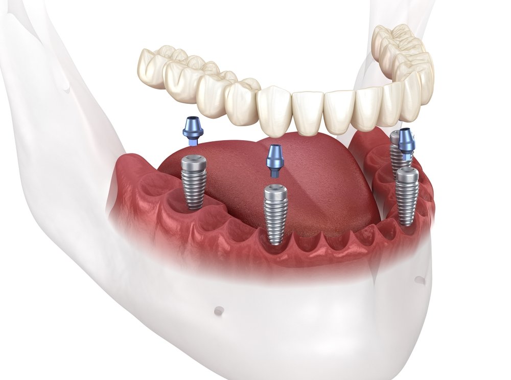 - на имплантатах. Пациенту вживляют титановый штифт. На него впоследствии устанавливается коронка. Она может быть выполнена из разных материалов (сейчас чаще всего применяется металлокерамика);