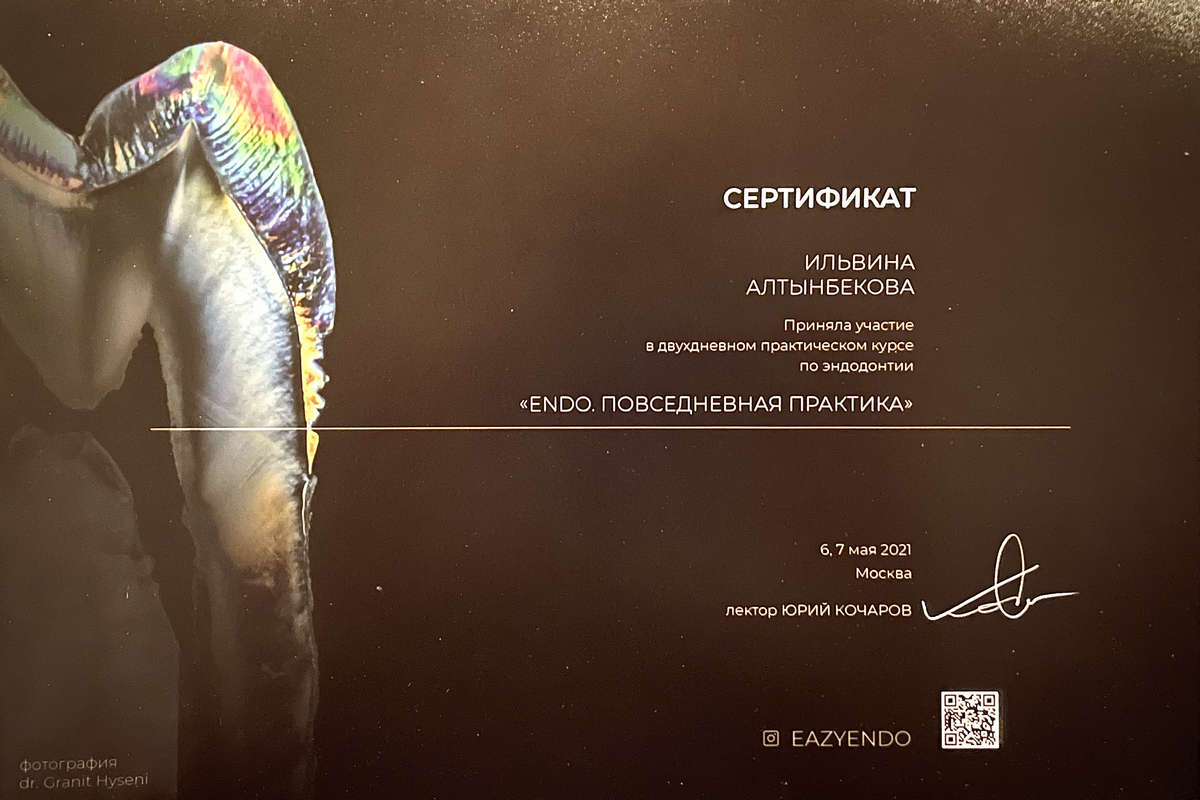2021 г. — участие в двухдневном практическом курсе по эндодонтии «EENDO. ПОВСЕДНЕВНАЯ ПРАКТИКА» Юрий Кочаров;