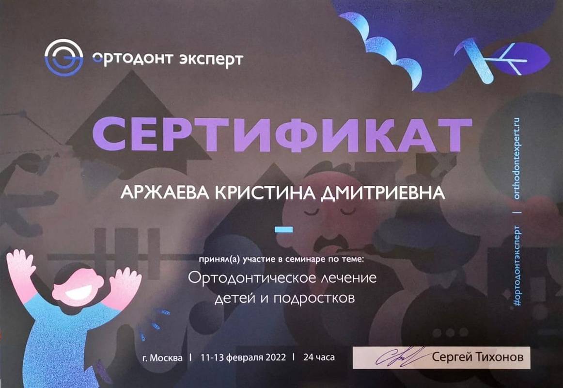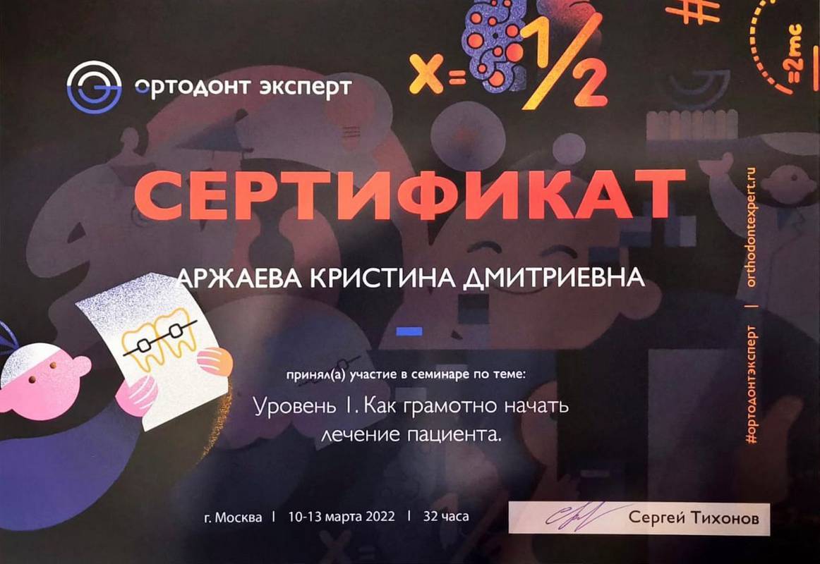 2022г. — семинар на тему: «Ортодонтическое лечение детей и подростков». Лектор: Тихонов Сергей Викторович г.Москва