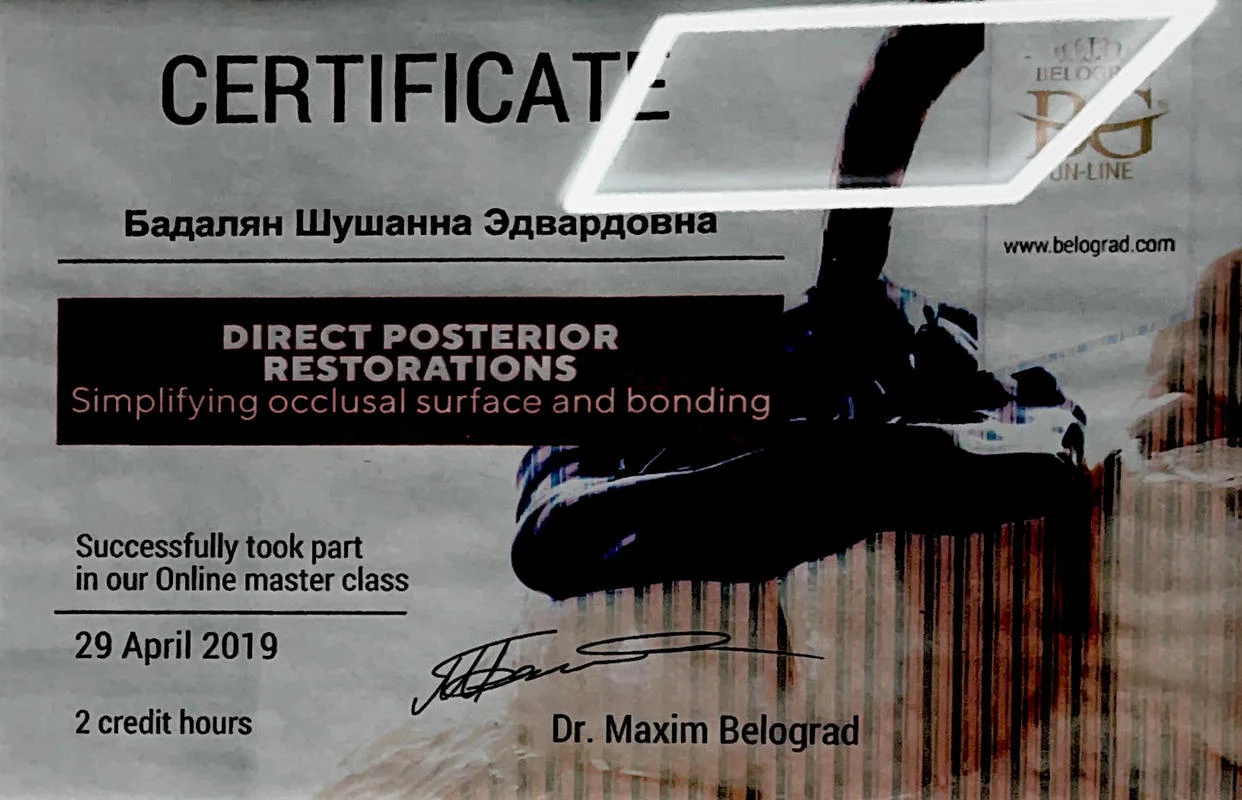 • 2019г. — «Direct Posterior Restorations», Kiev Maksim Belograd.