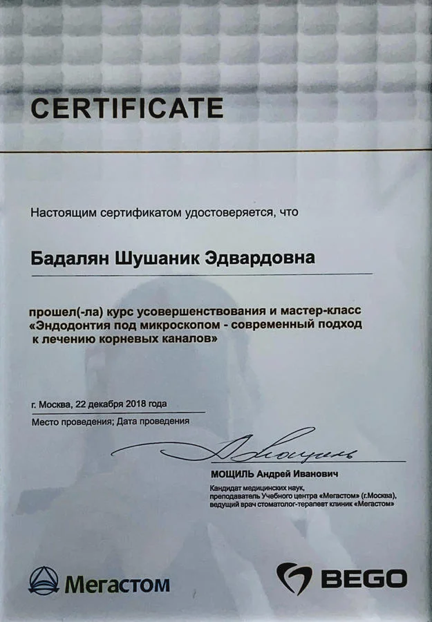 • 2018г. — «Эндодонтия под микроскопом - современный подход к лечению корневых каналов», Moscow.