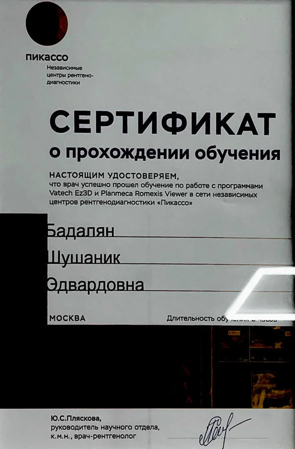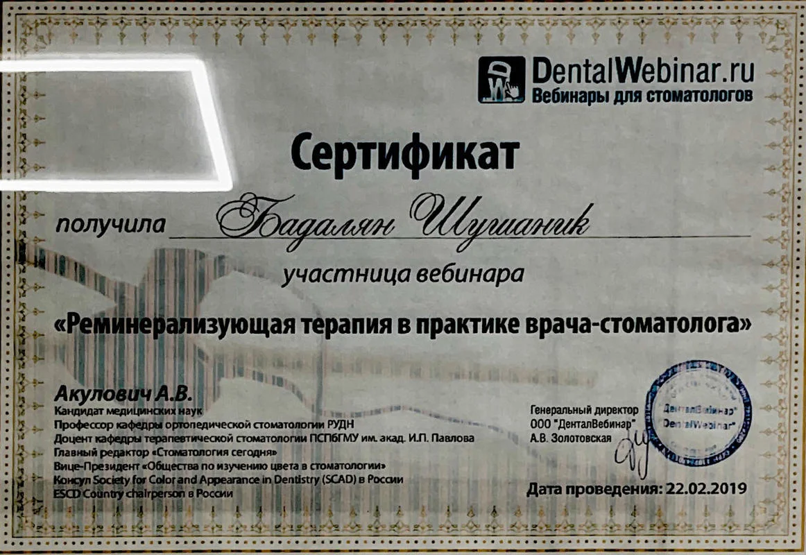 • 2012-2014гг. — Присвоена квалификация Врач-стоматолог. Ереванский Государственный медицинский университет им. Гераци. Диплом АД № 088162