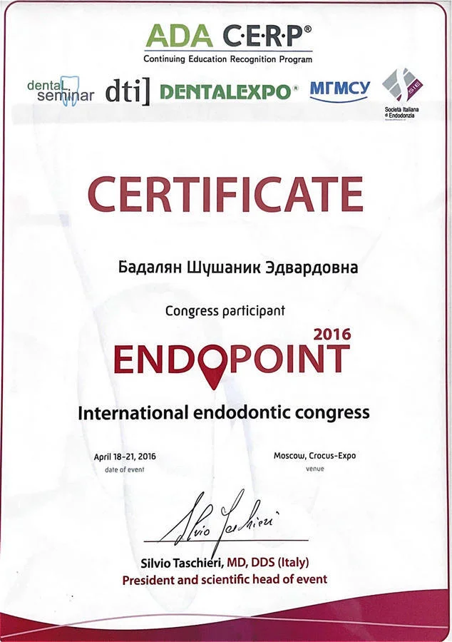 • 2016г. — «Endopoint International endodontic congress», Italy.