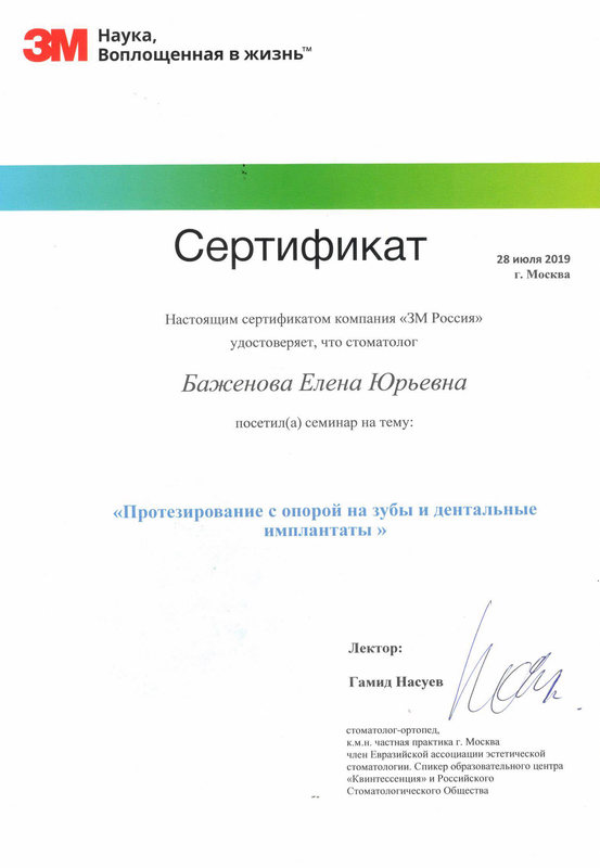 Современные стоматологические материалы компании 3М. Москва, Сертификат