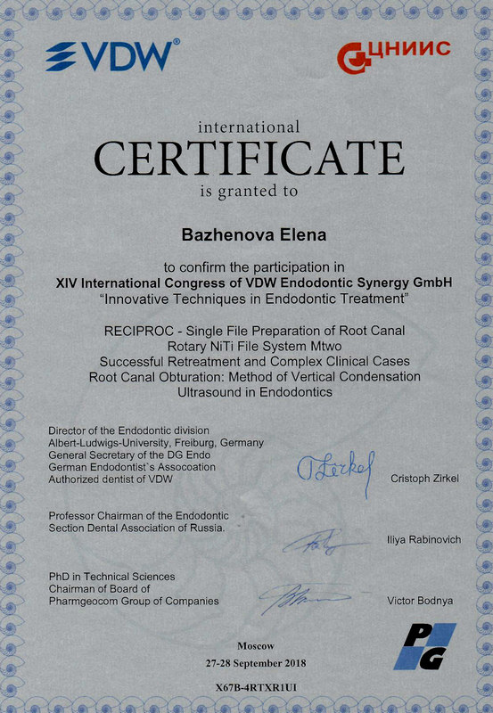Курс лекций компании VDW о современной эндодонтии, системе RECIPROK, методах вертикальной конденсации корневых каналов. Сертификат международного образца, г. Москва