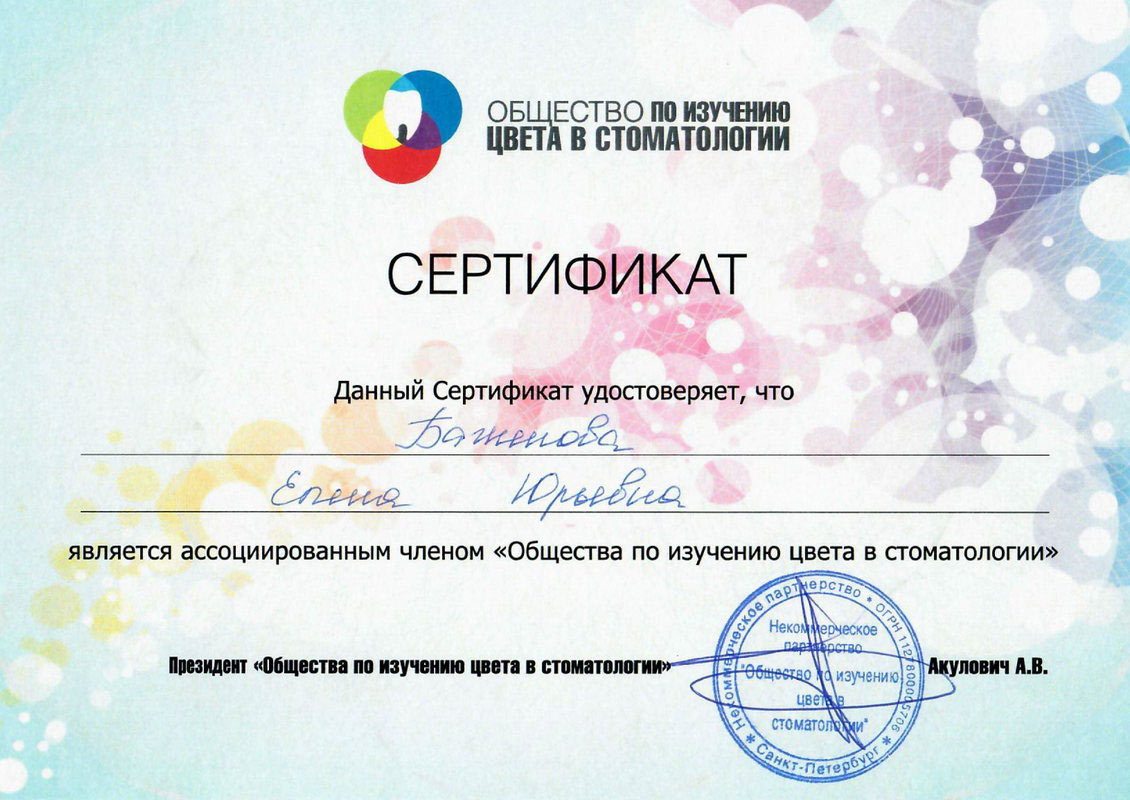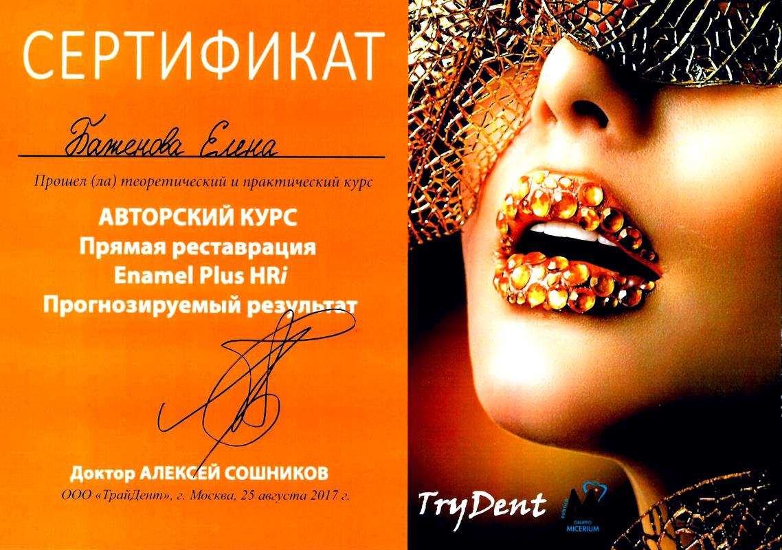 Новейшие технологии в эстетической реставрационной стоматологии. Проф. В.Н.Чиликин. Сертификат, г. Москва