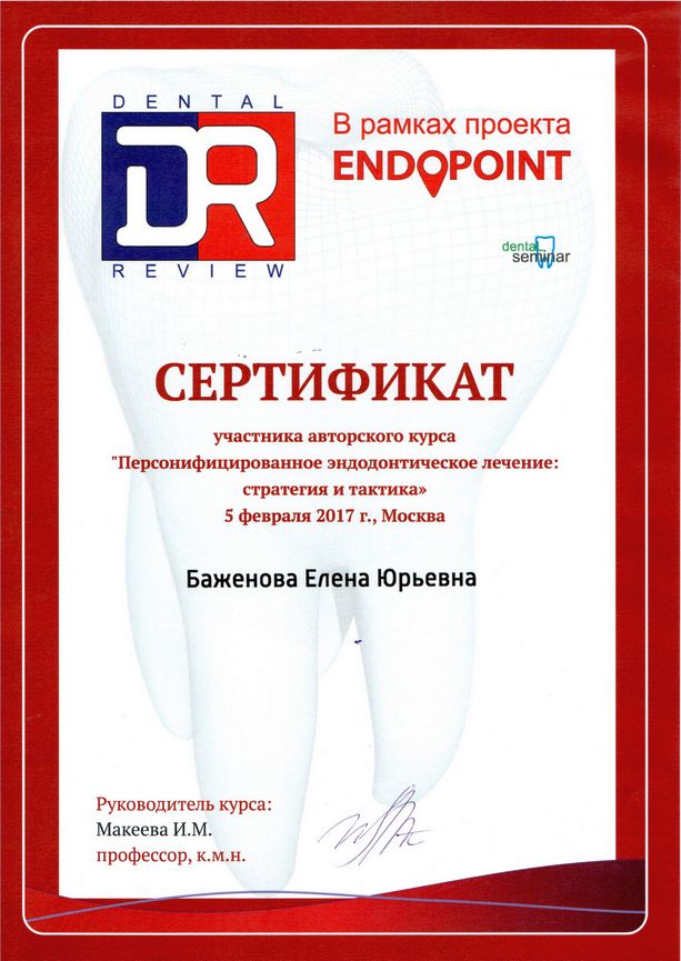 Эндодонтия профессора В.Н.Чиликина. Сертификат, г. Москва