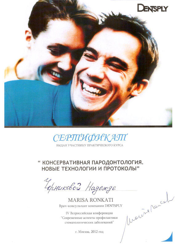 2012 г. — «Консервативная пародонтология. Новые технологии и протоколы». Мариса Ронкатти, Dentsply, г. Москва