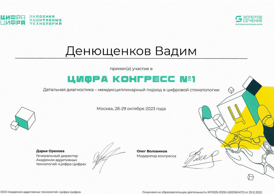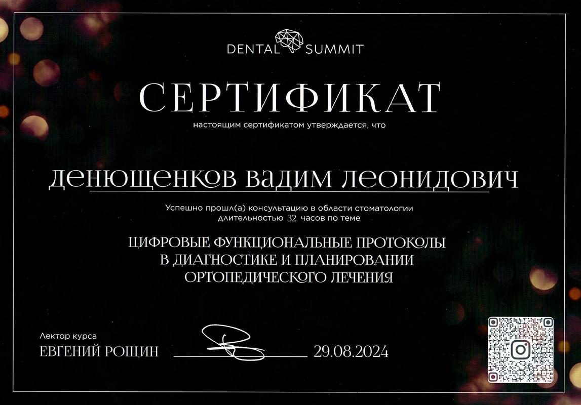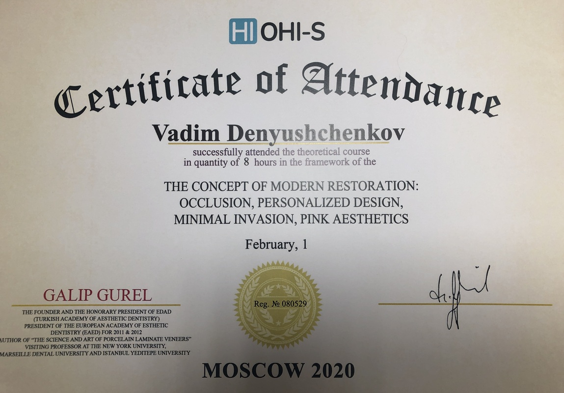 Сертификат «Реконструкция улыбки» Протокол современного ортопедического лечения керамическими реставрациями с опорой на естественных зубах и имплантатах