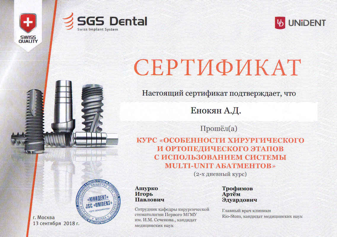 Особенности хирургического и ортопедического этапов с использованием системы Milti-Unit абатментов. SGS Dental. UNIDENT. Москва.