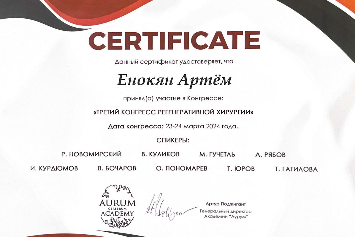 Третий конгресс Регенеративной хирургии. Академия «Аурум» Москва.