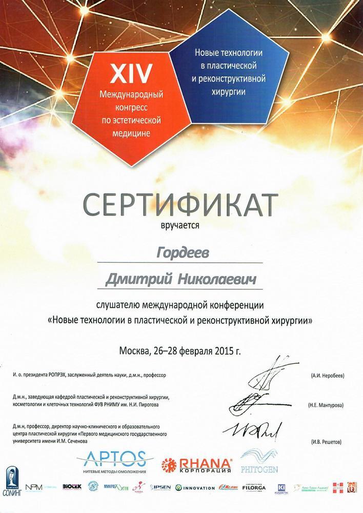 2015г. — Слушатель международной конференции «Новые технологии в пластической и реконструктивной хирургии».