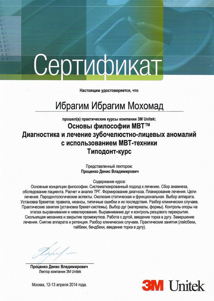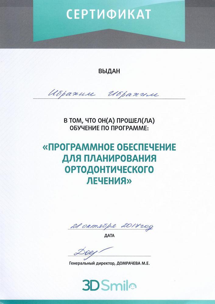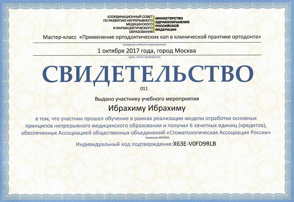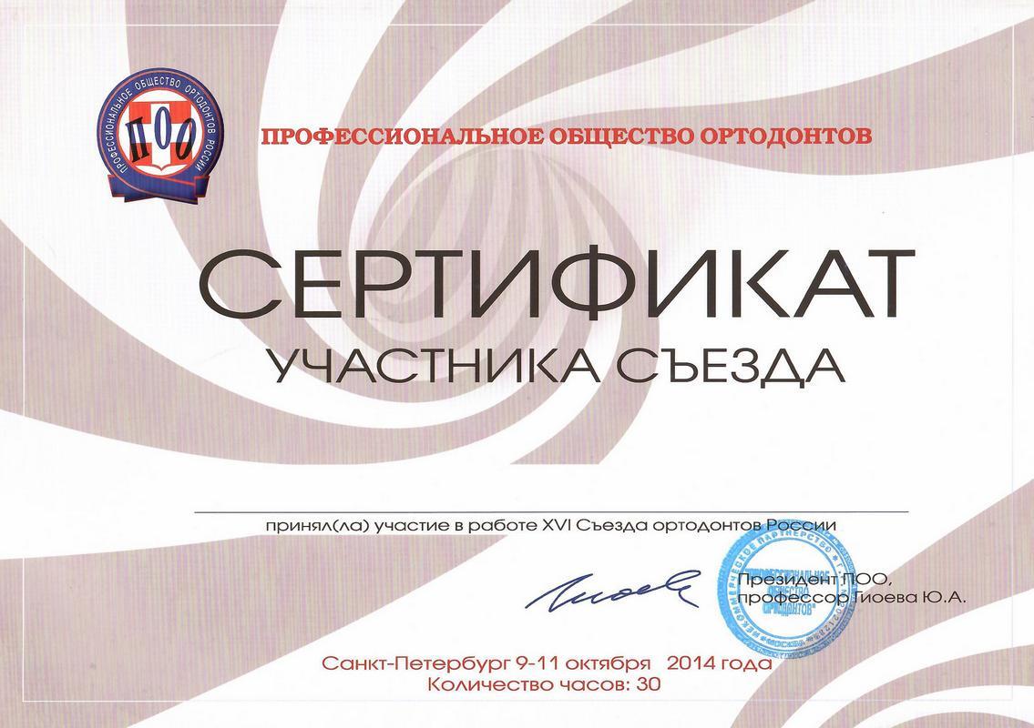 - 2015г. — ординатура по специальности «Ортодонтия» на базе МГМСУ