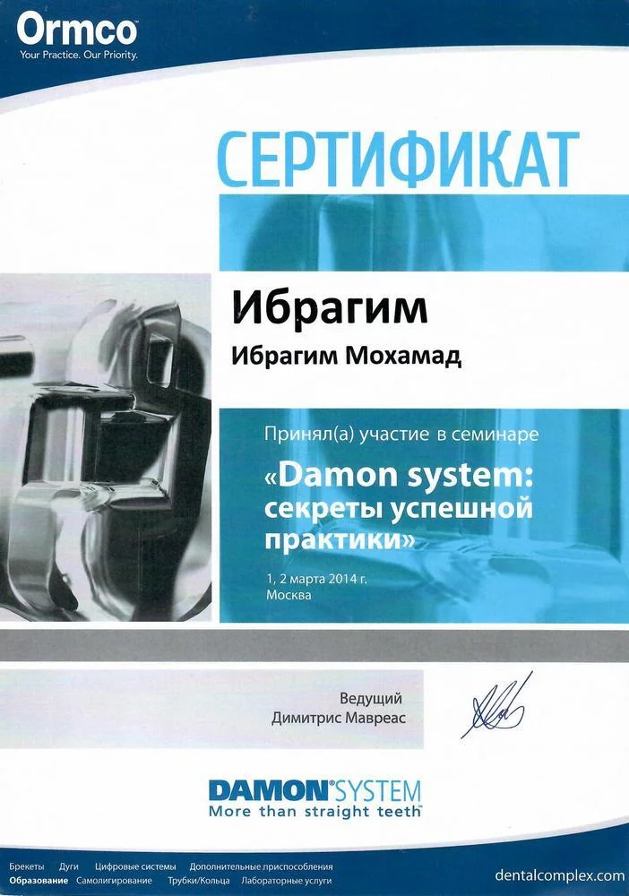 - 2024г. — «Успех в лечении сложных клинических случаев на брекет-системе Damon с применением дополнительной аппаратуры»