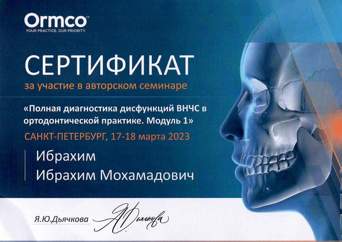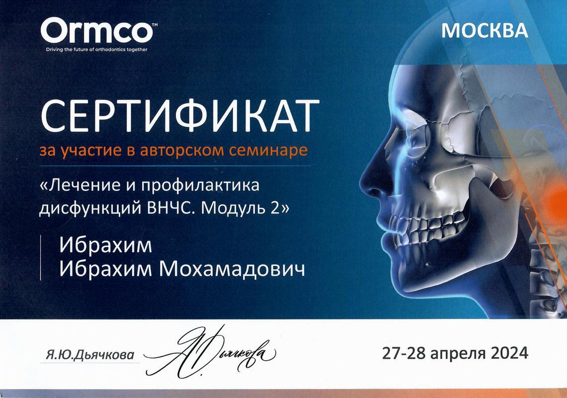 - 2023г. — «Полная диагностика дисфункций ВНЧС в ортодонтической практике»