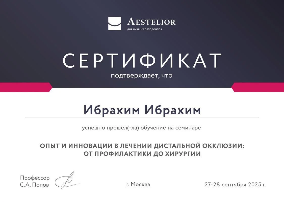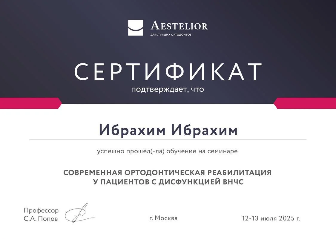 - 2025г. — «Современная ортодонтическая реабилитация у пациентов с дисфункцией ВНЧС»