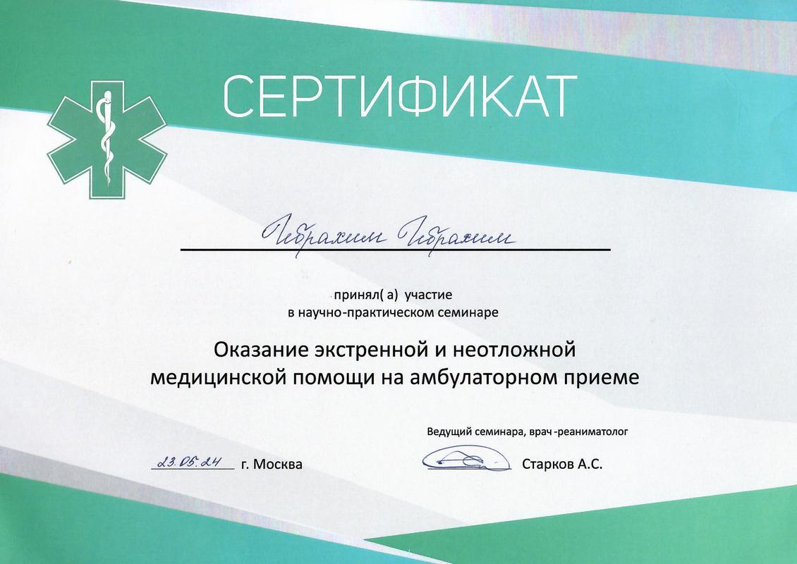- 2024г. — «Оказание экстренной и неотложной медицинской помощи на амбулаторном приеме»