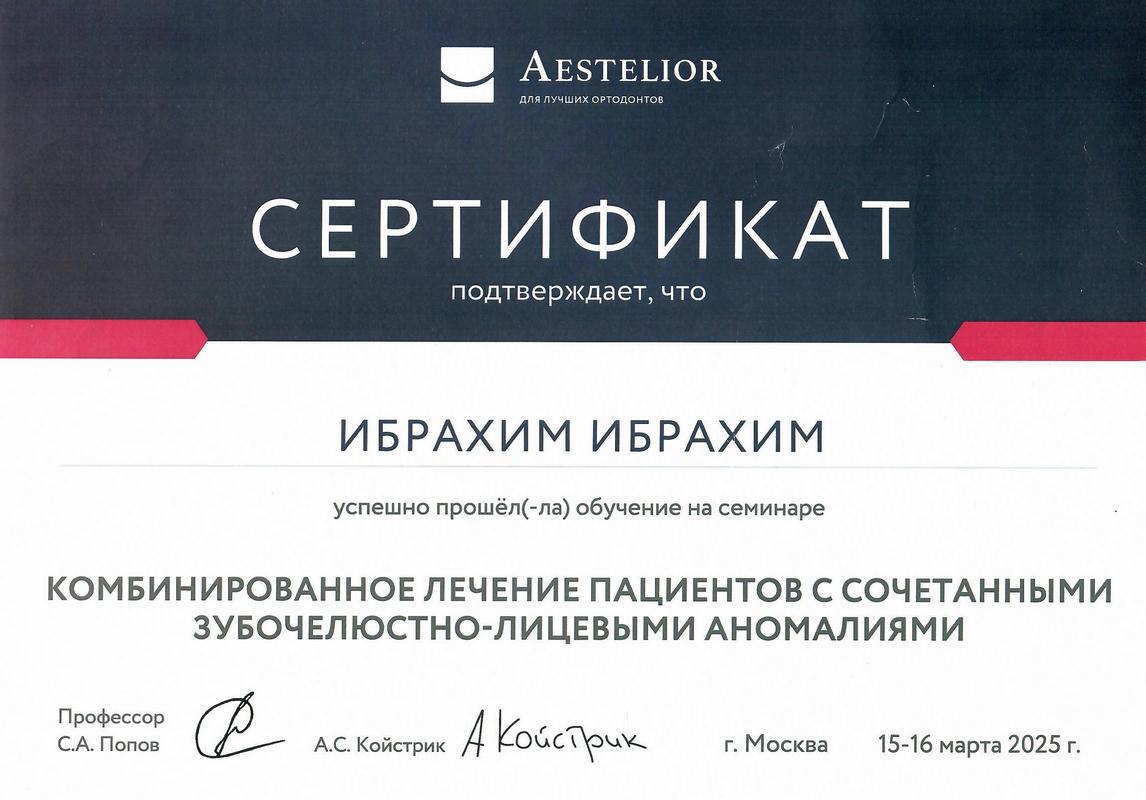 - 2025г. — «Комбинированное лечение пациентов с сочетанными зубочелюстно-лицевыми аномалиями»