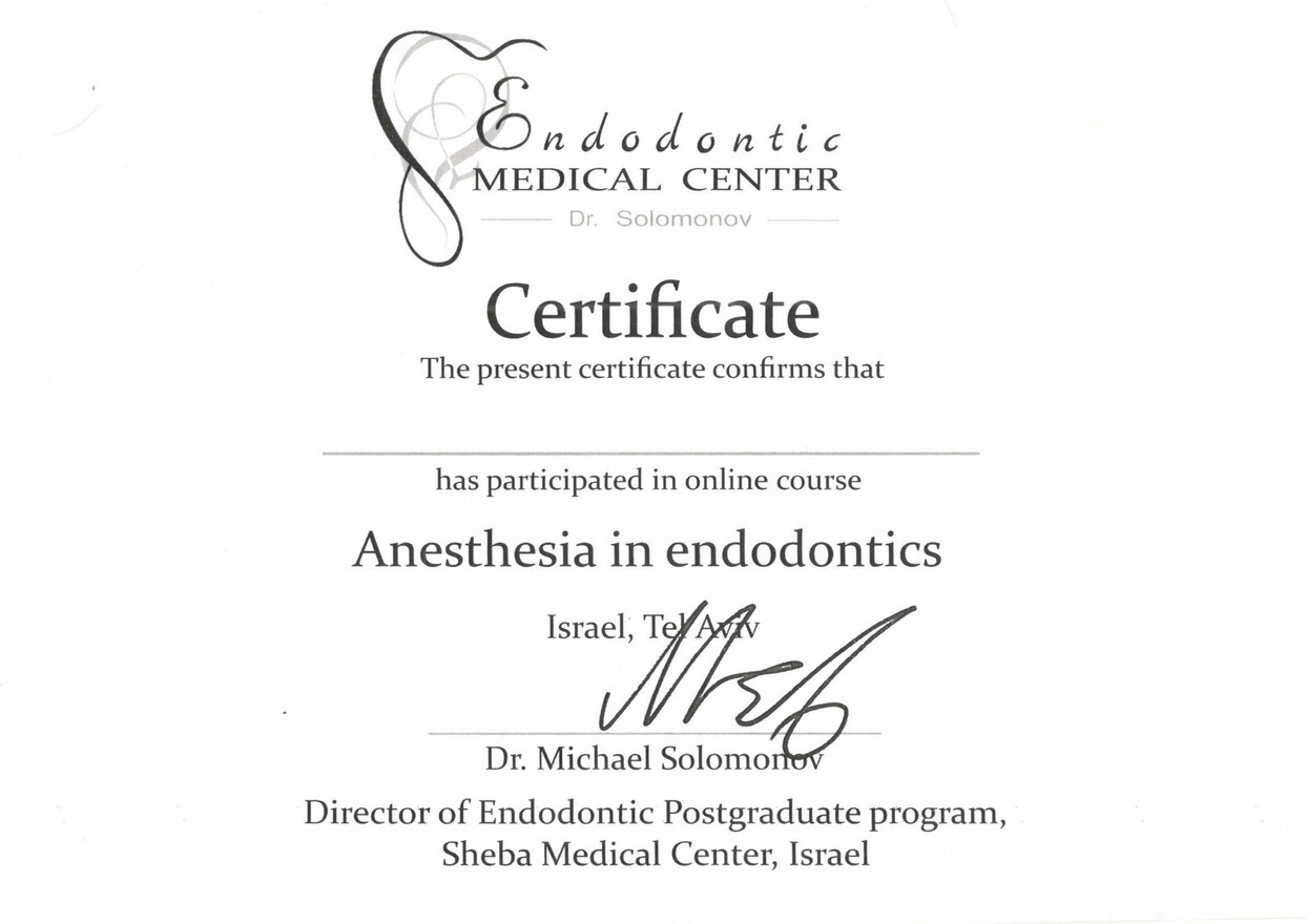 2017г. — Курс «Anesthesia in endodonttiks» Israel, Tel Aviv