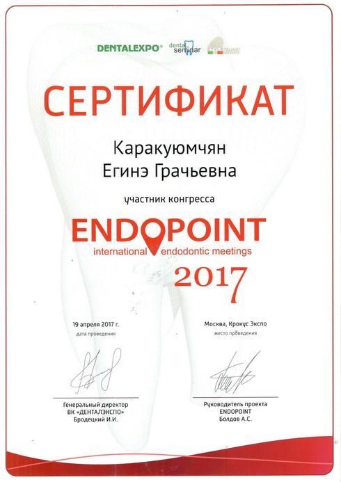 2017г. — Сертификат участника конгресса ENDOPOINT international endodontic meetings, г.Москва