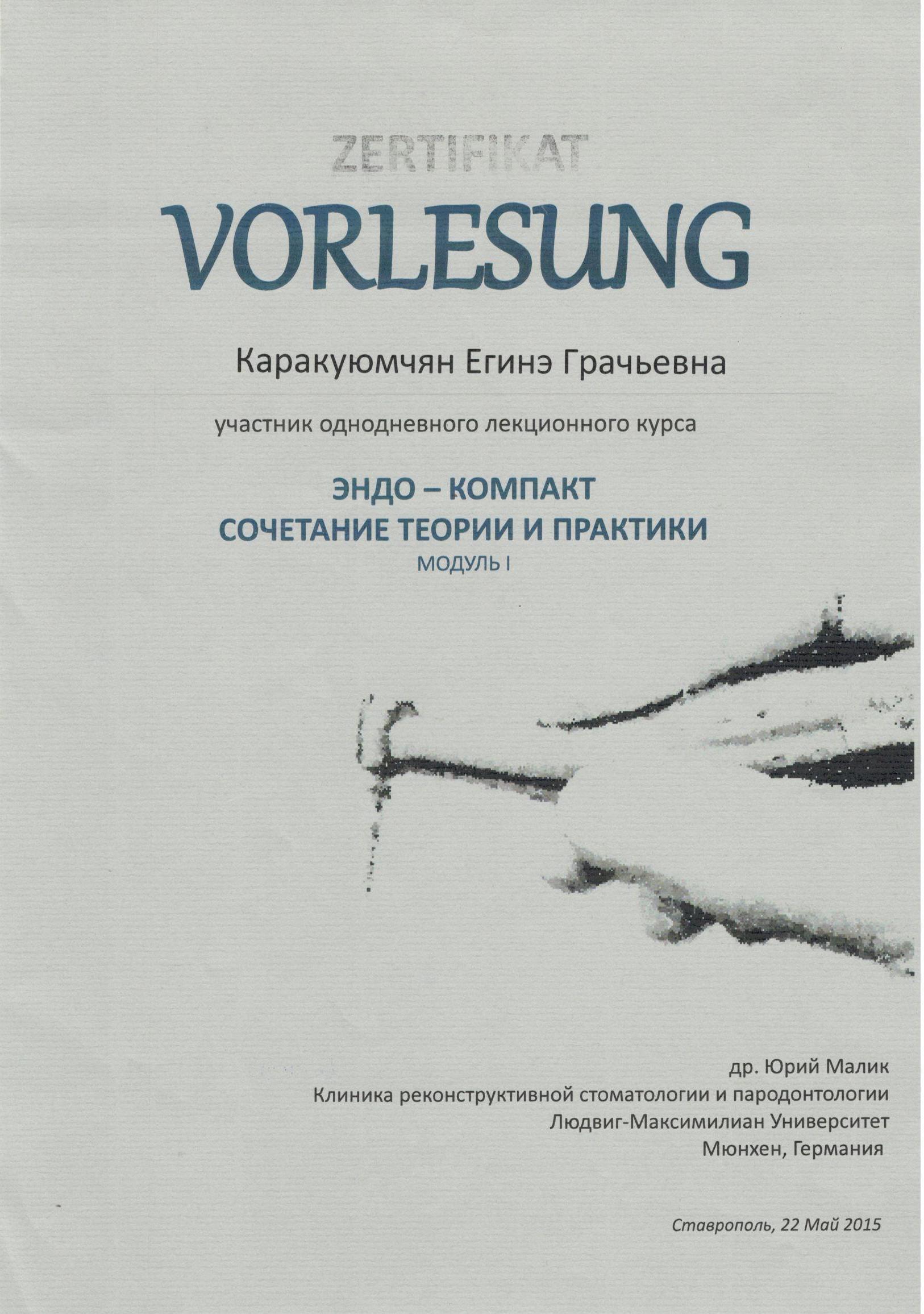 2015г. — VORLESUNG Эндо-Компакт Сочетание теории и практики (модуль I), г.Ставрополь