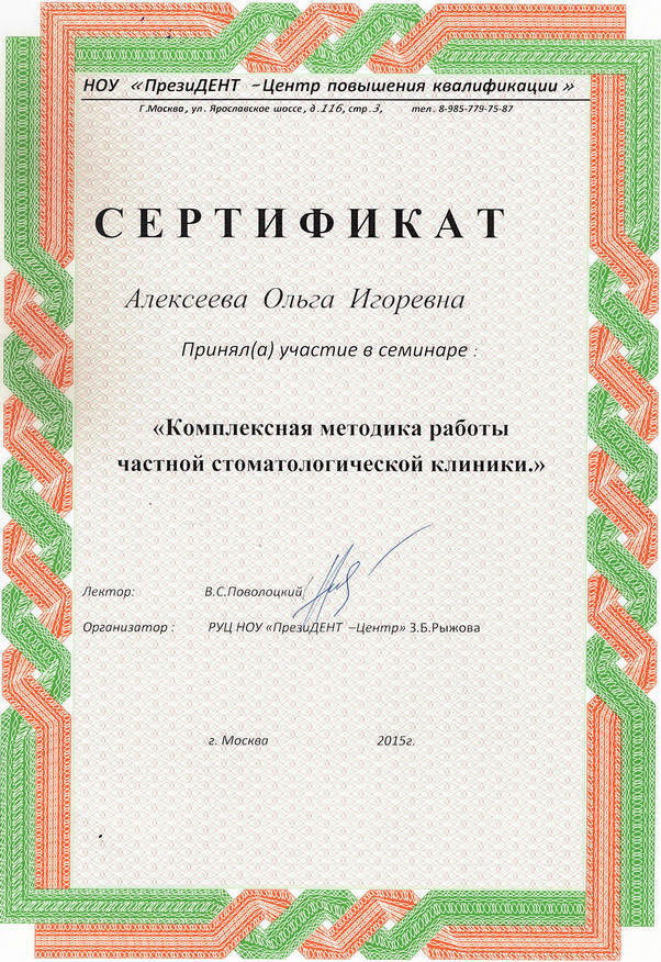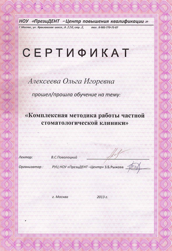 2013г. — НОУ Президент - Комплексные методы работы частной стоматологической клиники