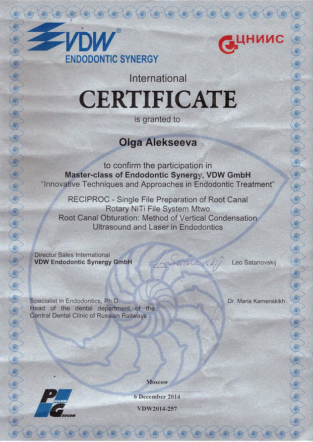 2014г. — ЦНИИС, Курс обучения и мастер класс «Рациональная эндодонтия с использованием никель титановых инструментов»