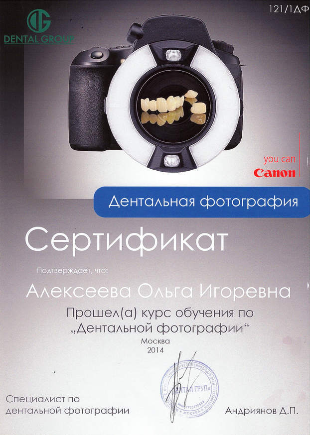 2014г. — Дентал Групп, курс обучения «Дентальная фотография»