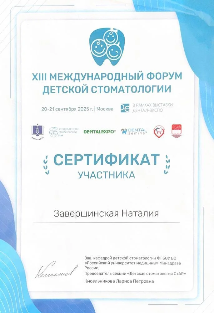 - 2025г. — Участник международного форума детской стоматологии