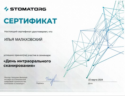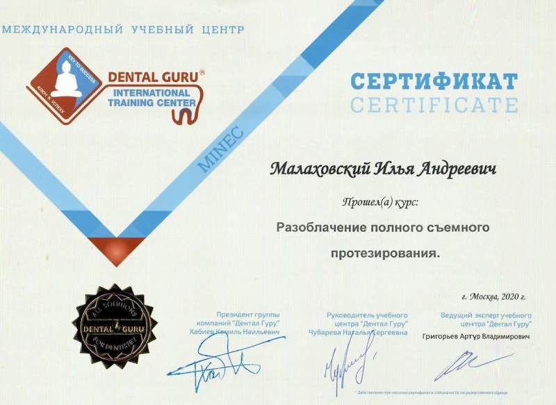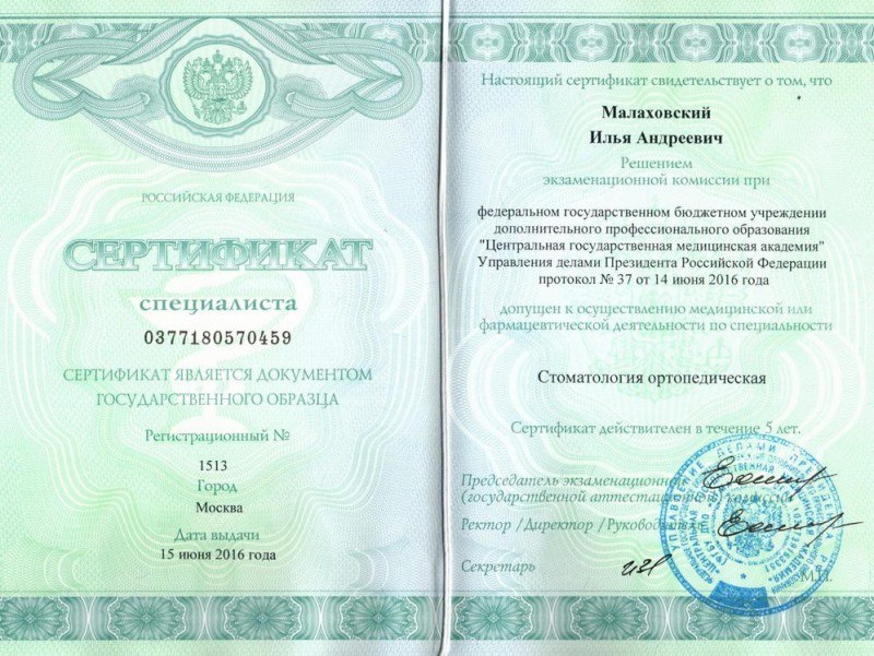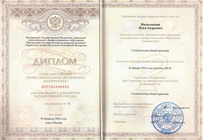 2016г. – Интернатура по специальности «Стоматолог общей практики», Центральная государственная медицинская академия