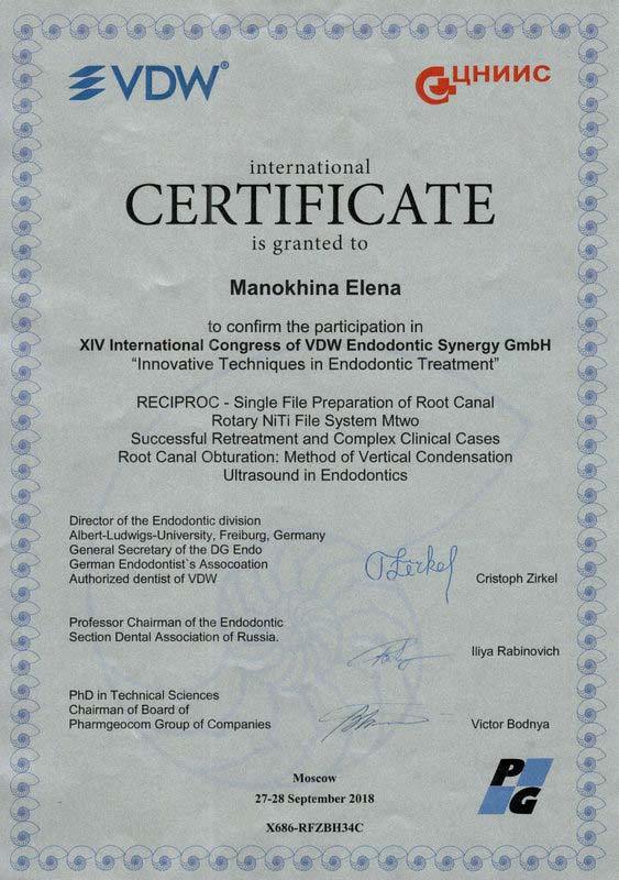 Has participated in XII International Congress of VDW Endodontic Synergy GmbH «Innovative Techniques in Endodontic Treatment» Moscow