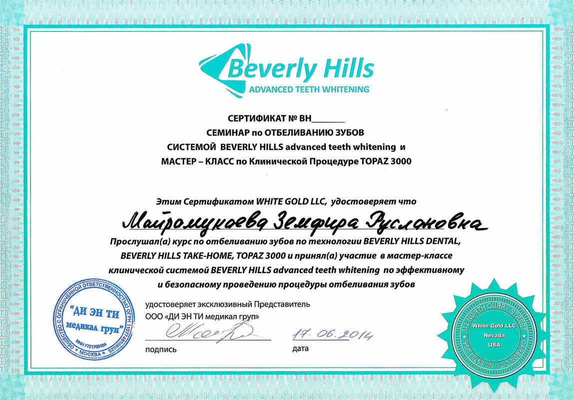 Курс по отбеливанию зубов по технологии BEVERLY HILLS;