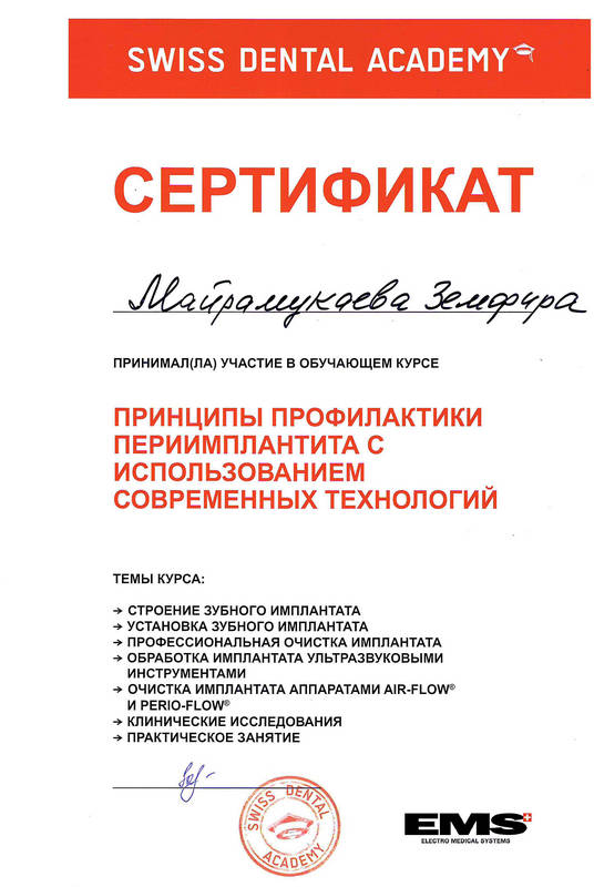 «Принципы переимплантита с использованием современных технологий » Swiss dental academy;