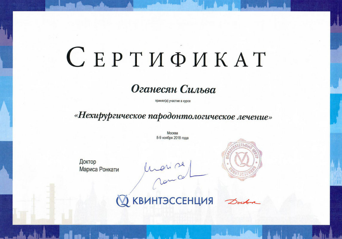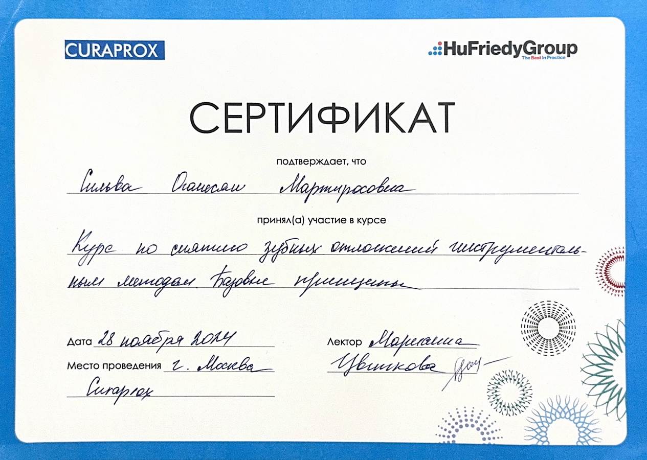 - Сертификат по специальности «Стоматология»20152015