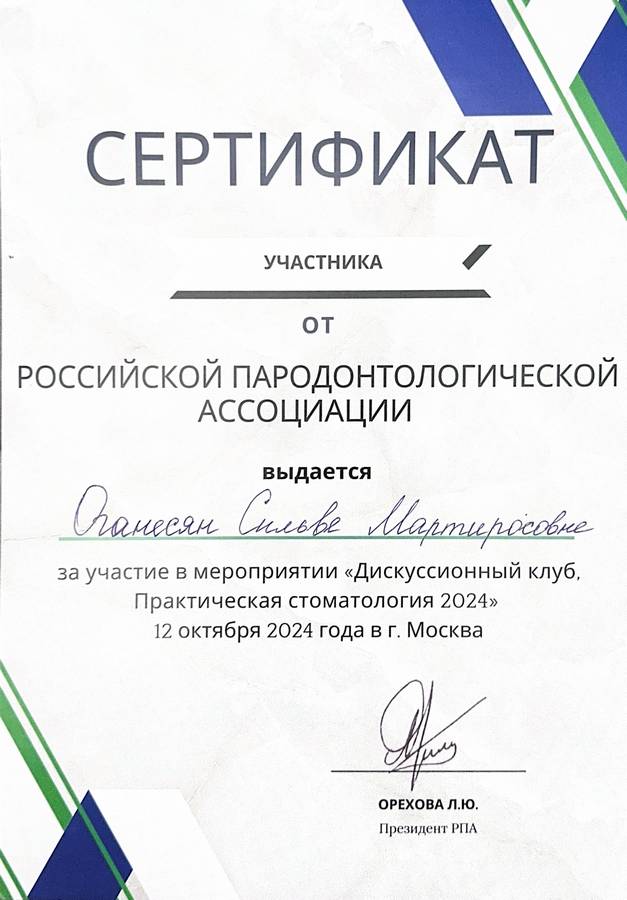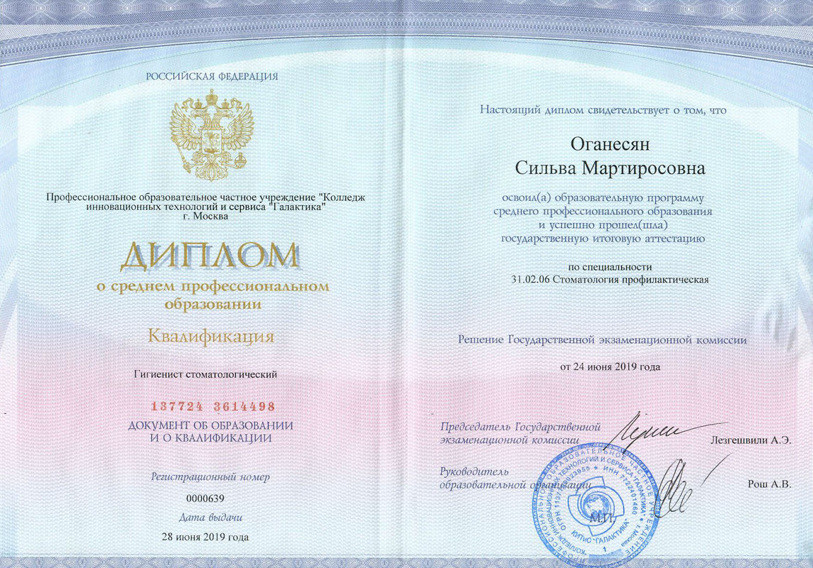 - Диплом специалиста о профессиональной переподготовке в сфере Стоматология профилактическая20192019