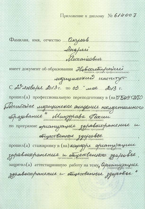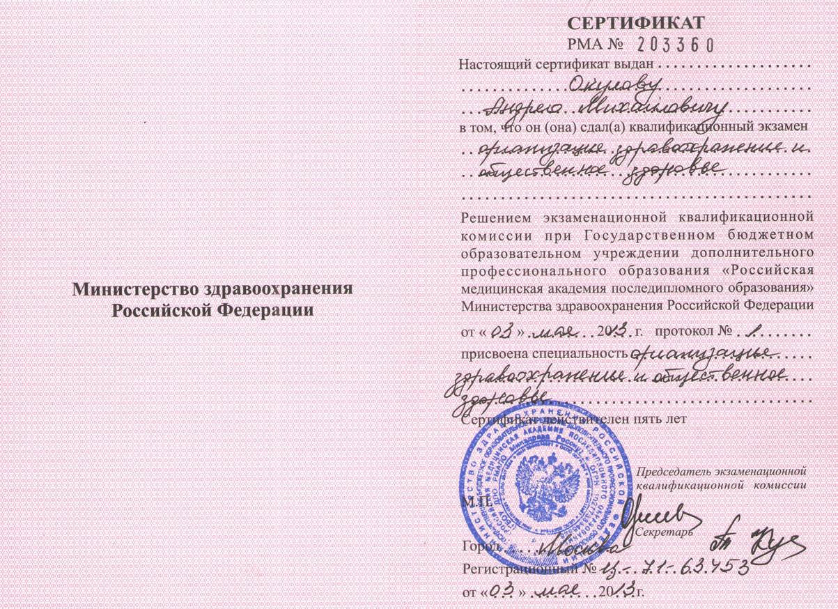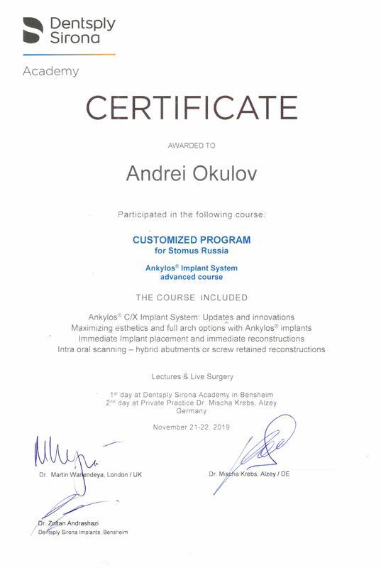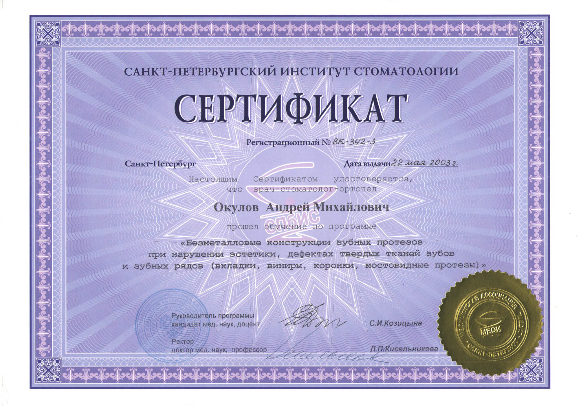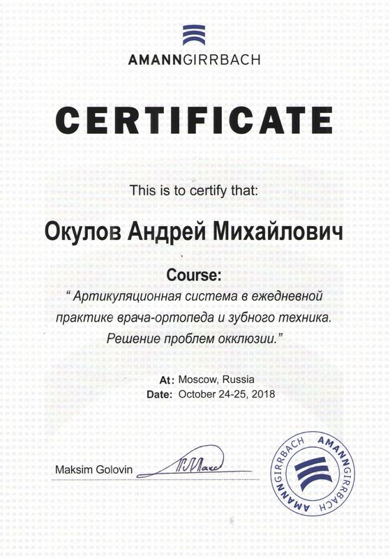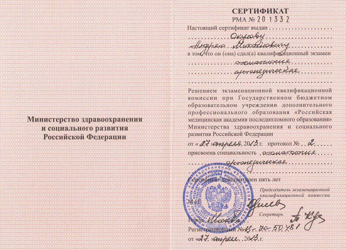 «Новосибирская государственная медицинская академия» сертификат по специальности «Стоматология ортопедическая»