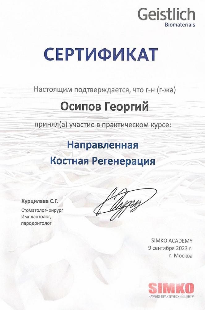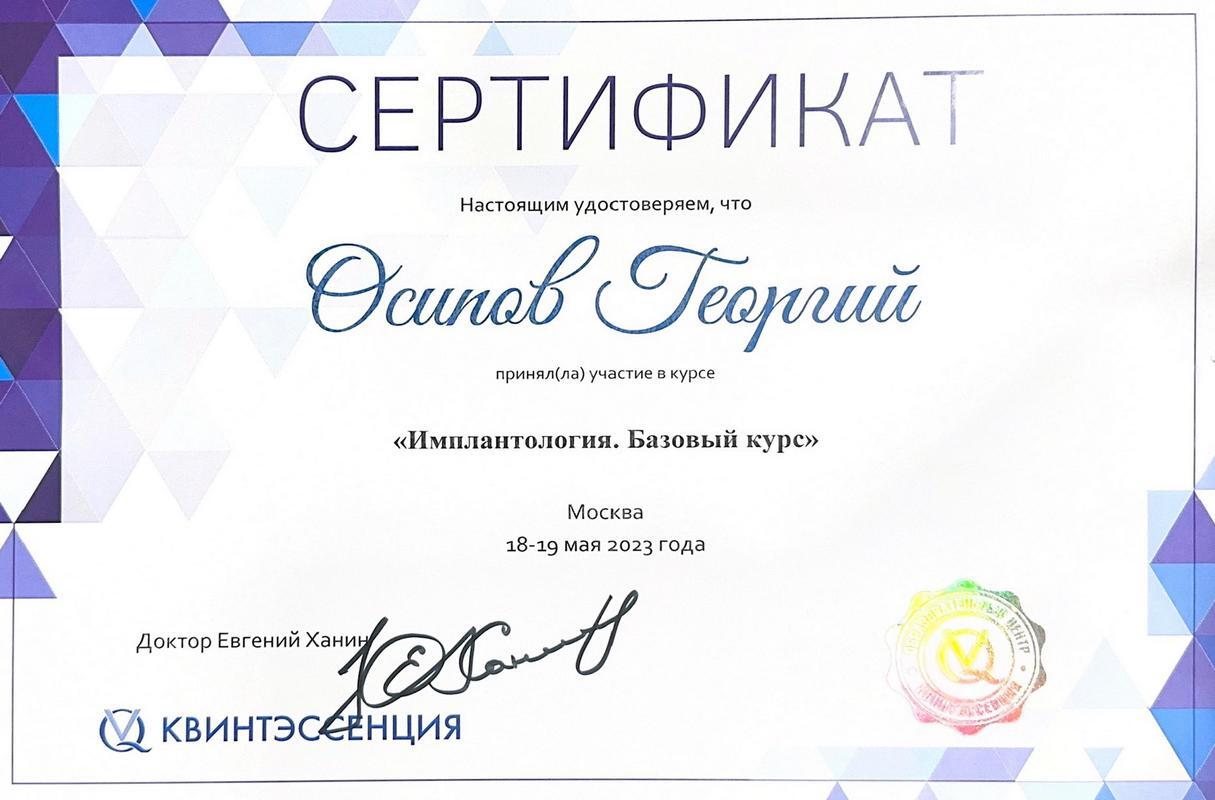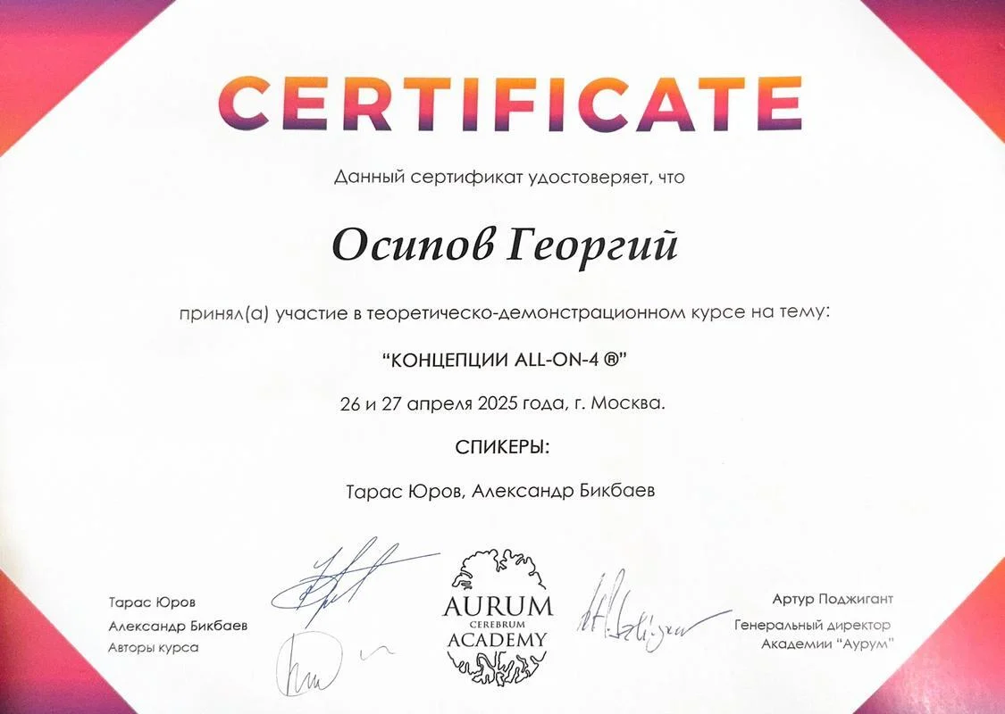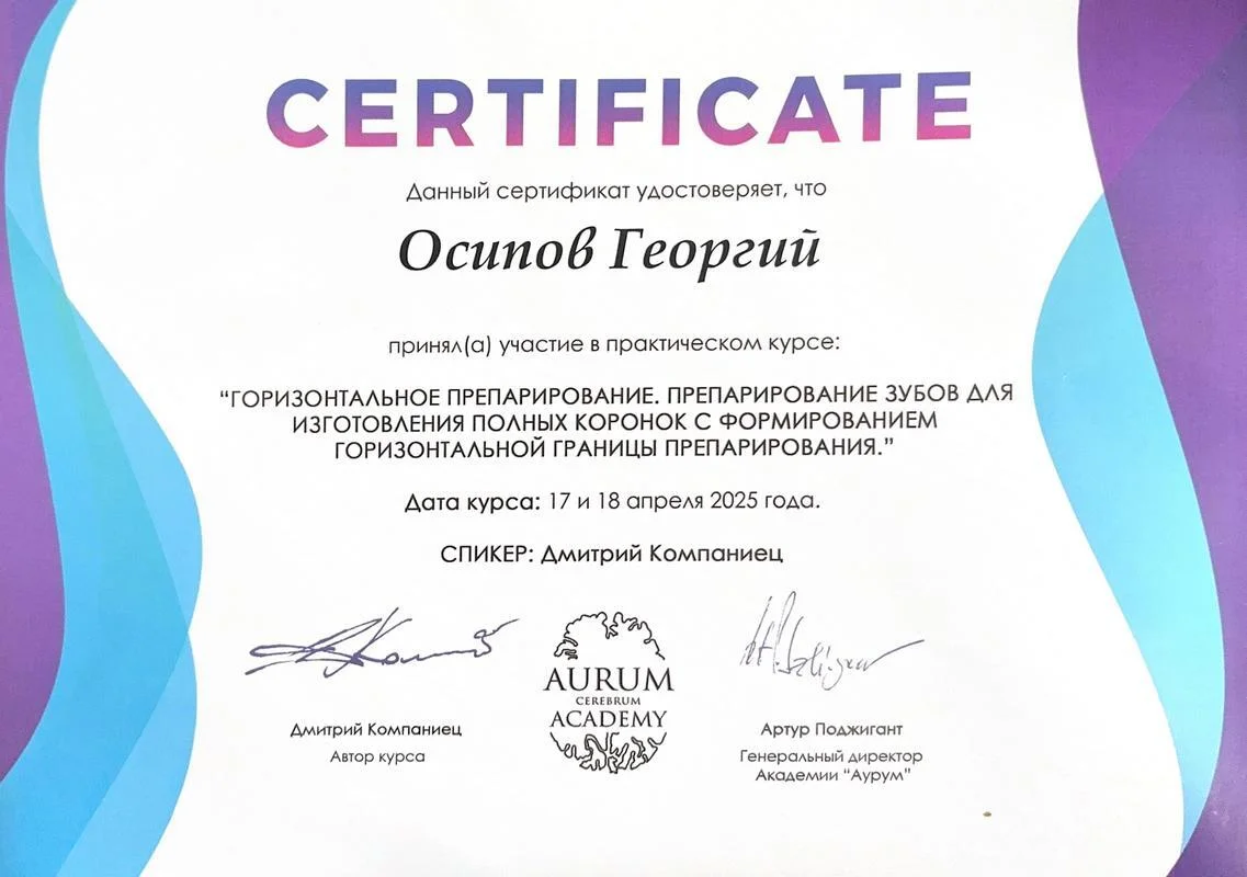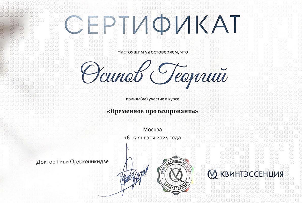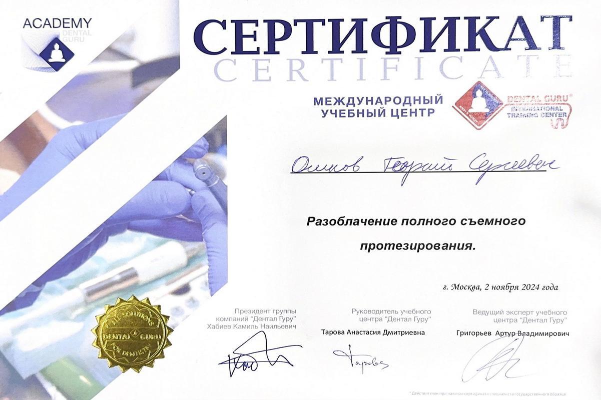 - 2021 г. — Стоматология ортопедическая, «Центральная государственная медицинская академия»