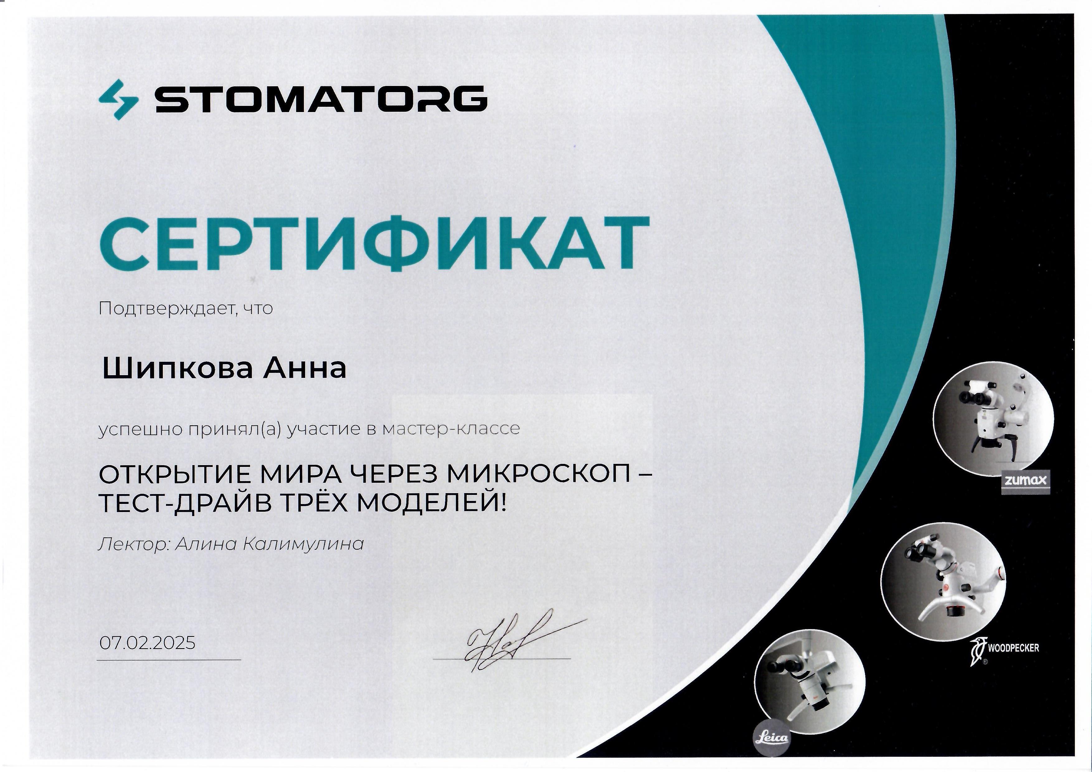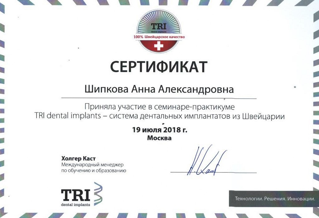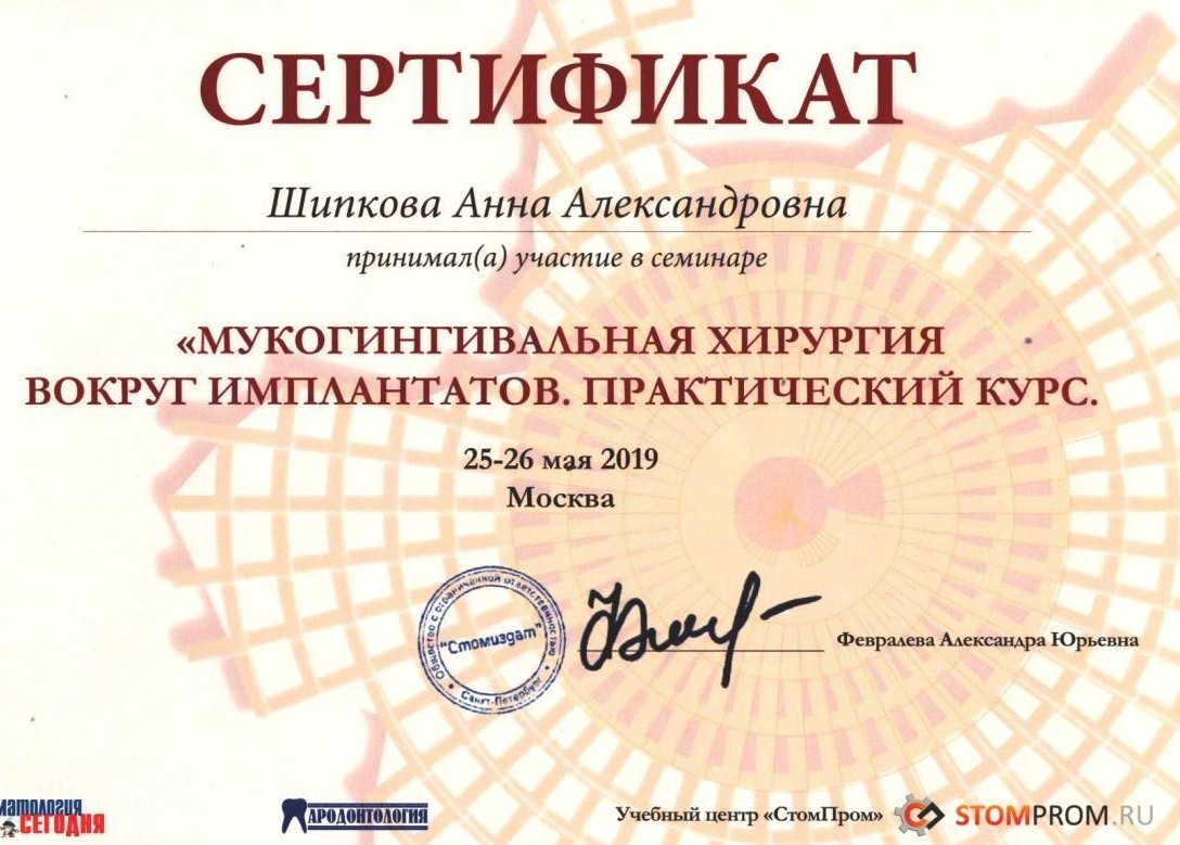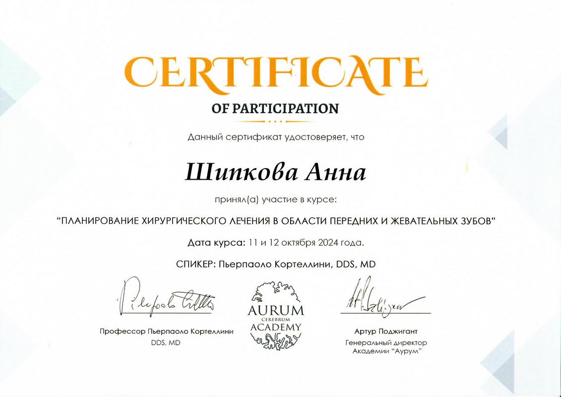 - Диплом по специальности врач-стоматолог. Московский государственный медико-стоматологический университет имени А. И. Евдокимова20142014