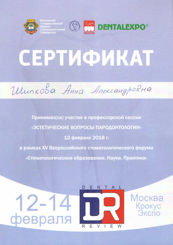 - «Клиническая анатомия и адгезивная прямая реставрация зубов фронтальной группы», Компания «Протеко», г. Москва2014