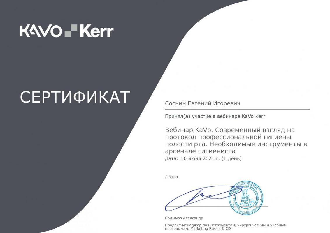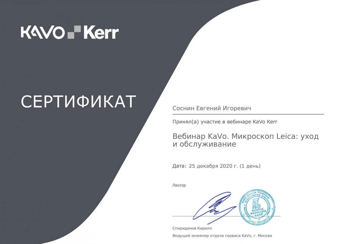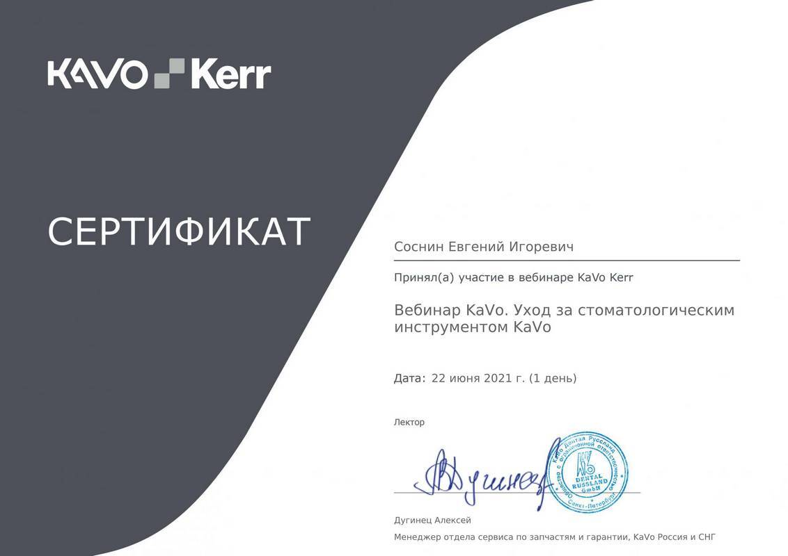2021 г. — Уход за стоматологическими инструментами KaVo