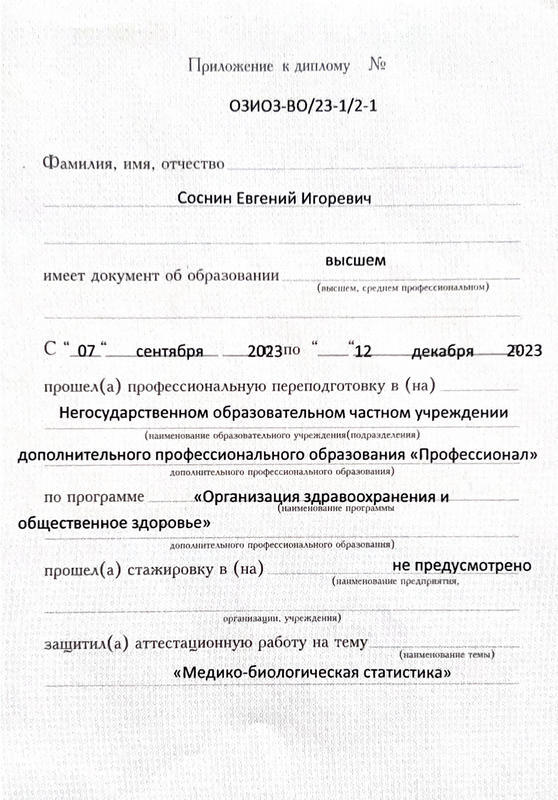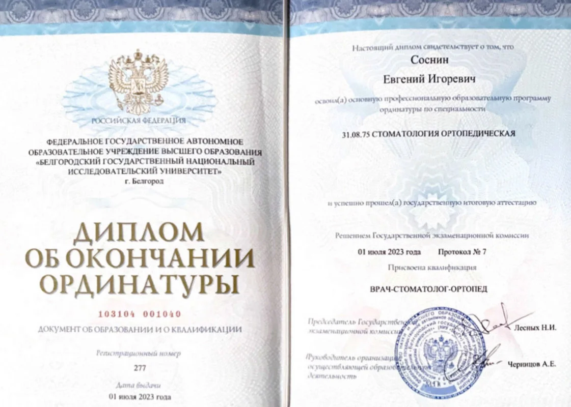 2023г. — Ординатура «Белгородский государственный национальный исследовательский университет (НИУ «БелГУ»);