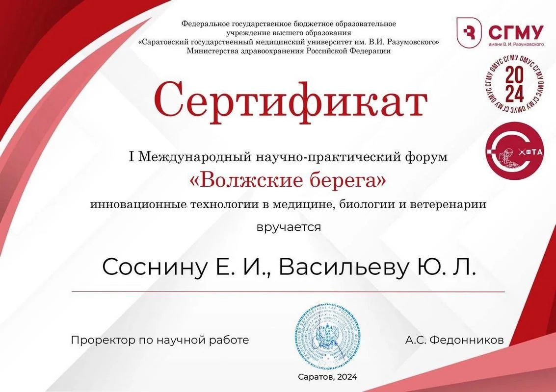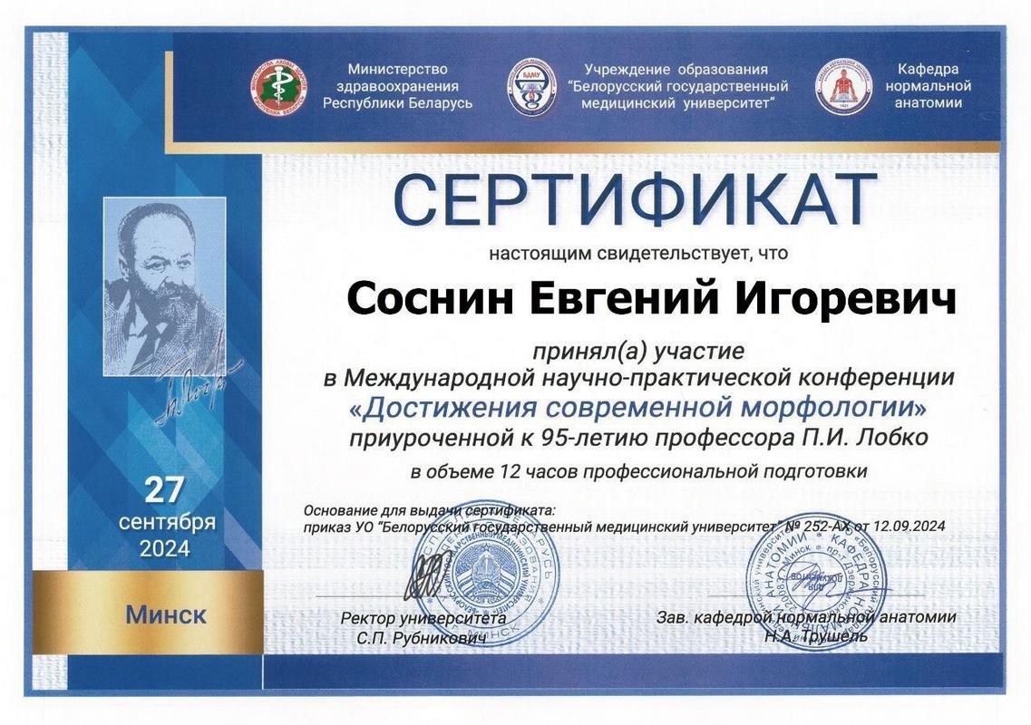 2024 г. — Участник международной научно-практической конференции «Достижения современной морфологии»