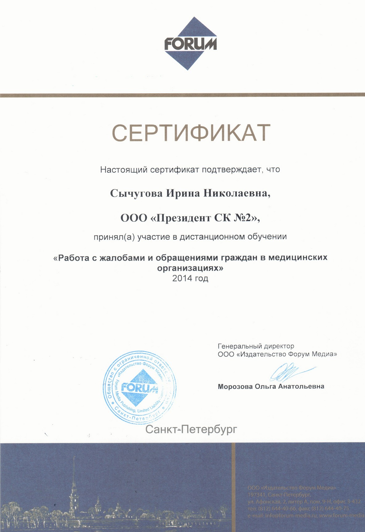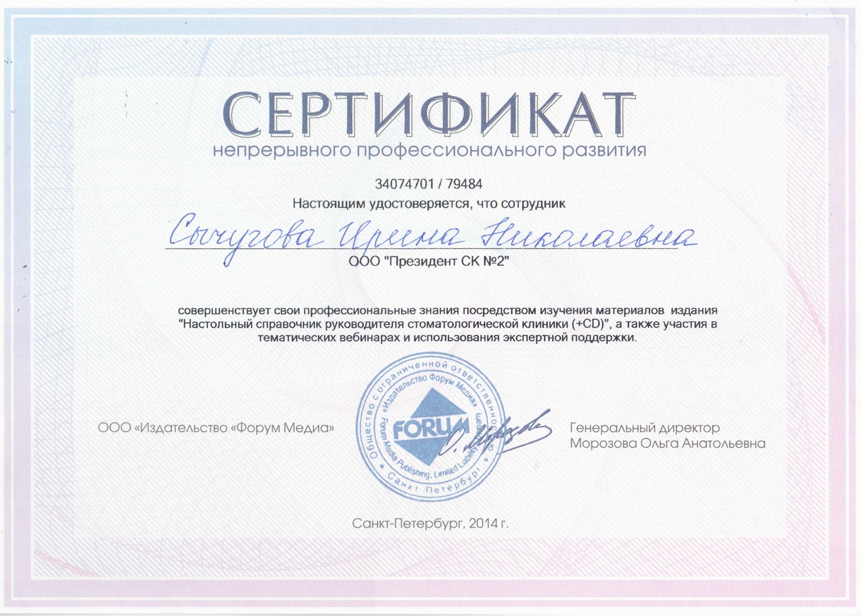 Сертификат по непрерывному профессиональному обучению.