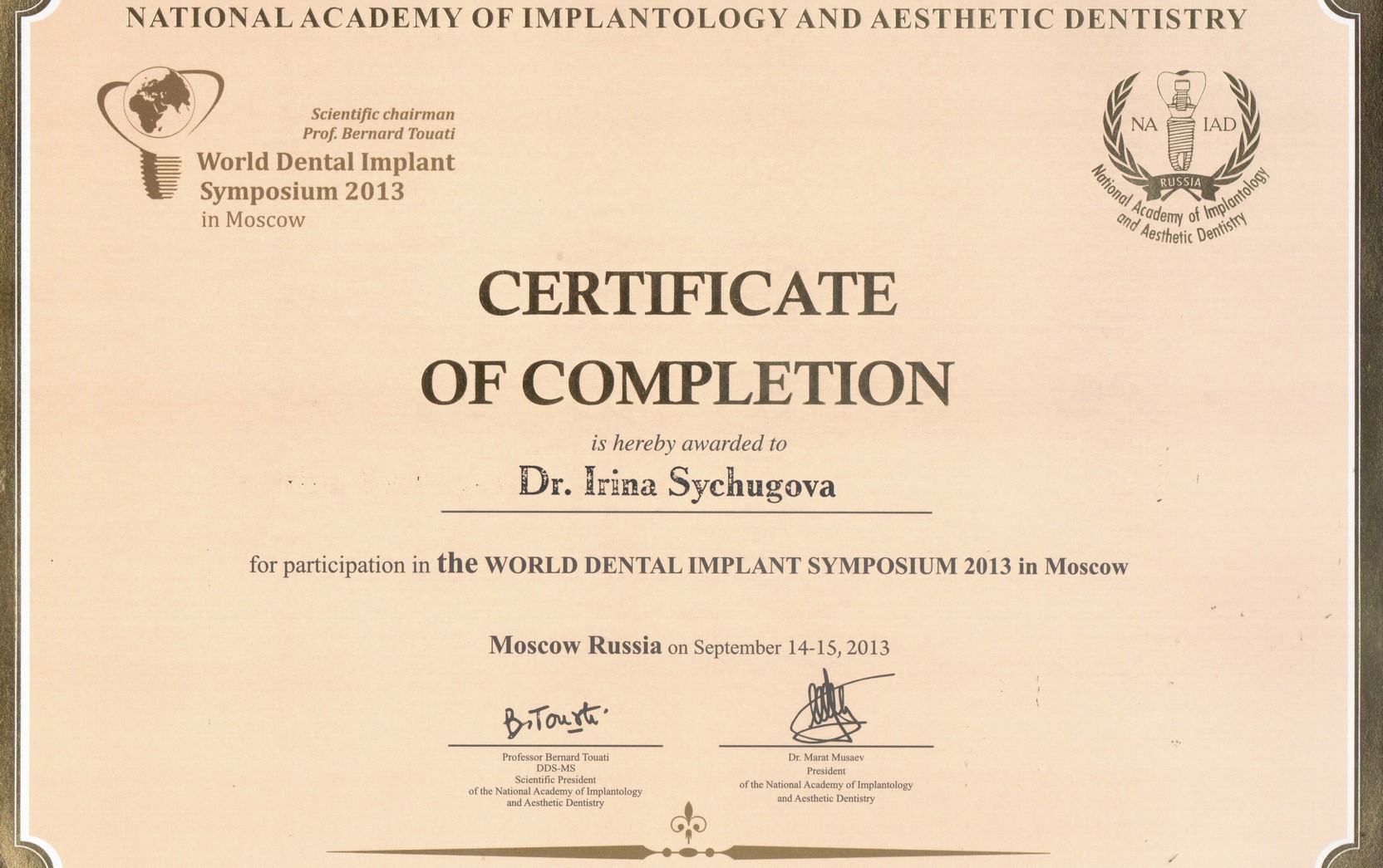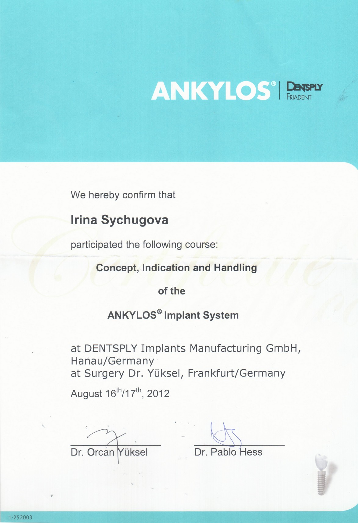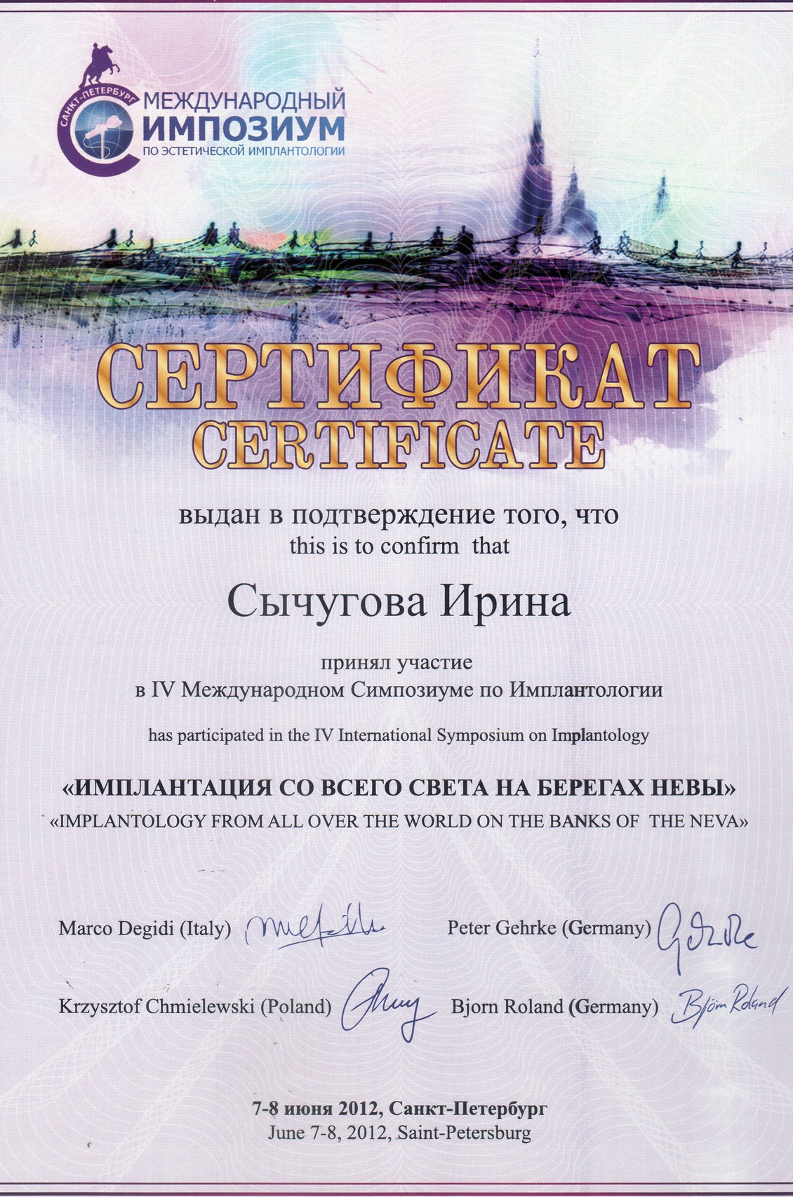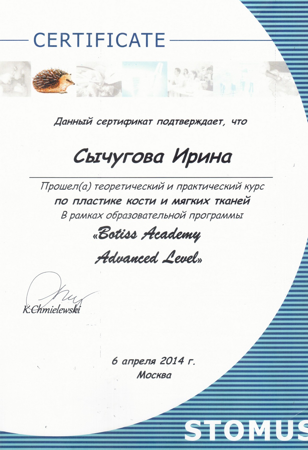 Диплом по курсу «Продвинутые хирургические методики в имплантологии»