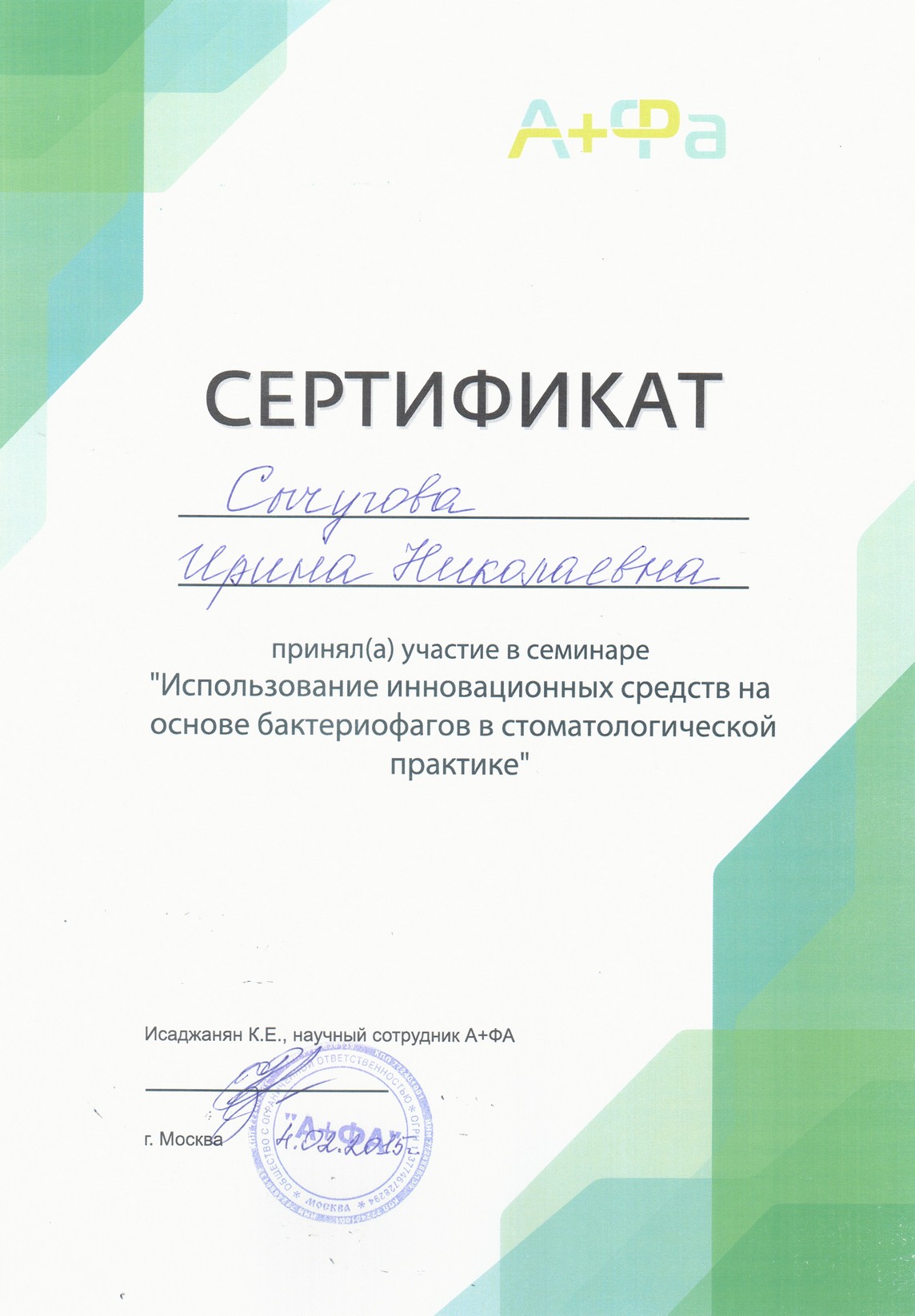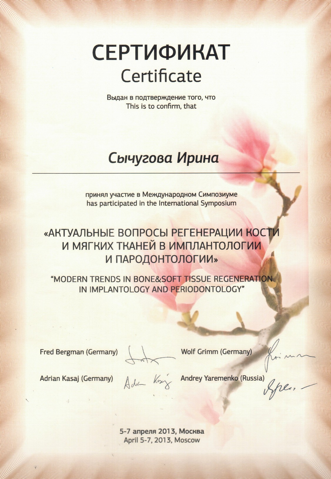 Сертификат по специальности «Хирургическая стоматология»