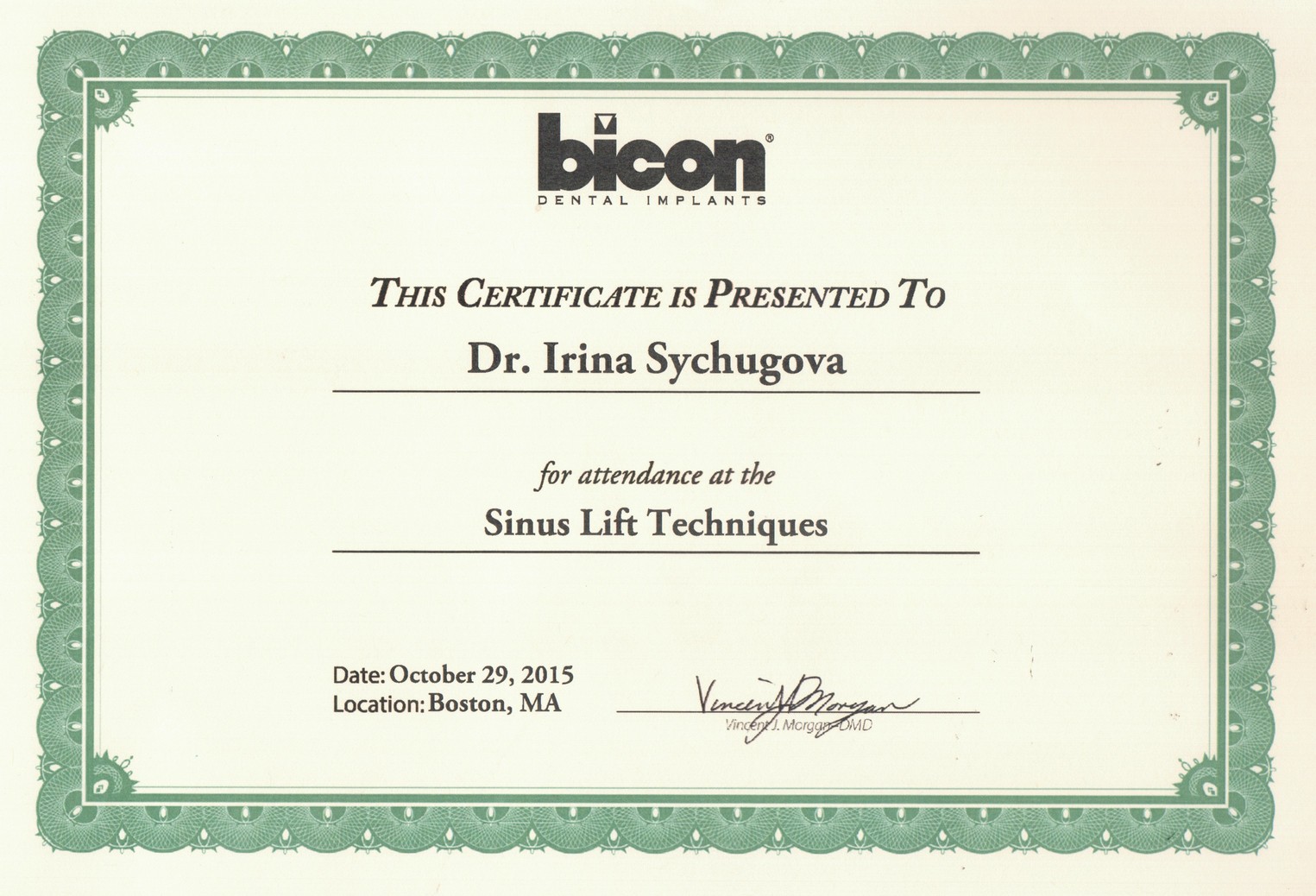 Сертификат по «Техника синус лифтинга»