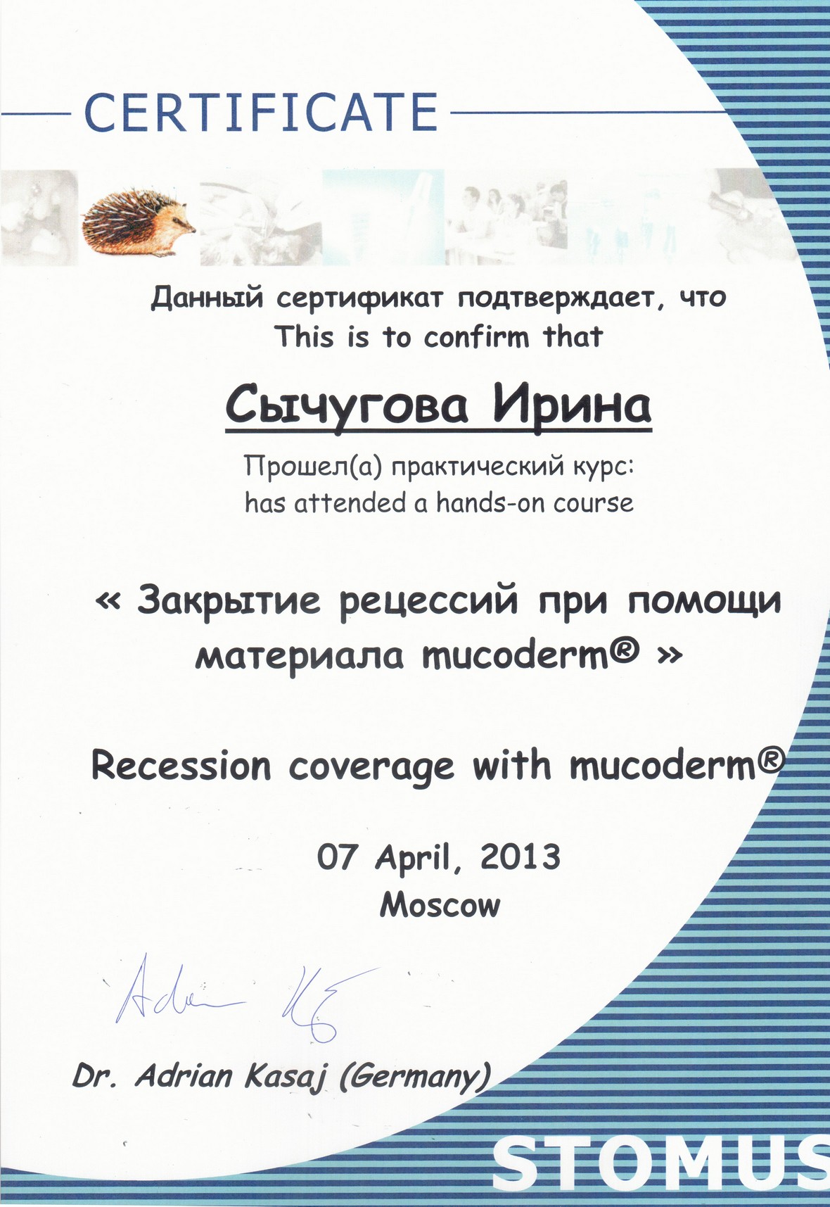 Прошла практический курс по «Закрытию рецессий при помощи материала mucoderm»