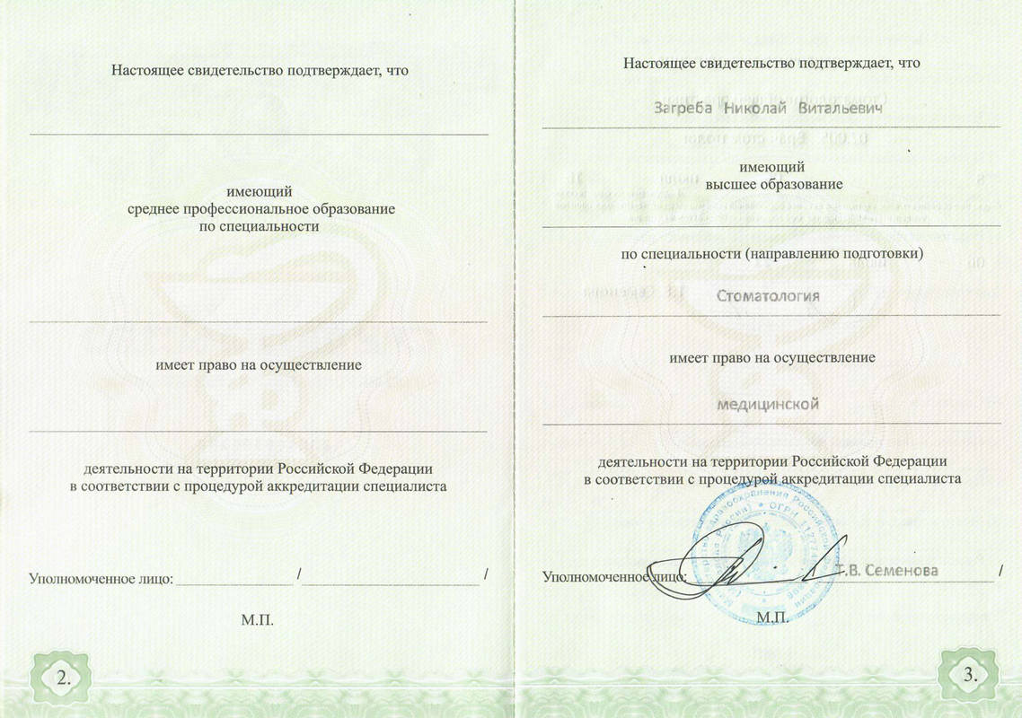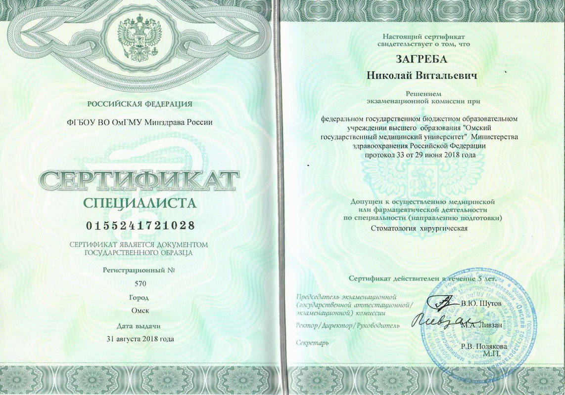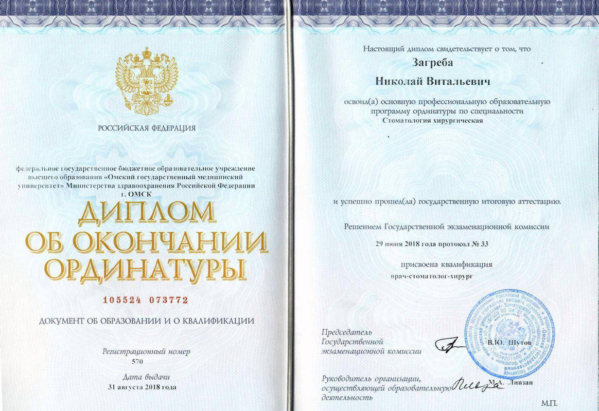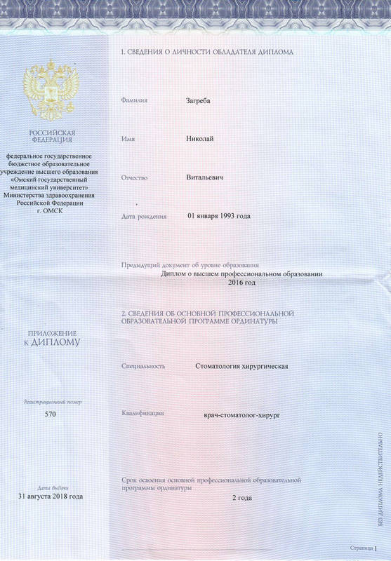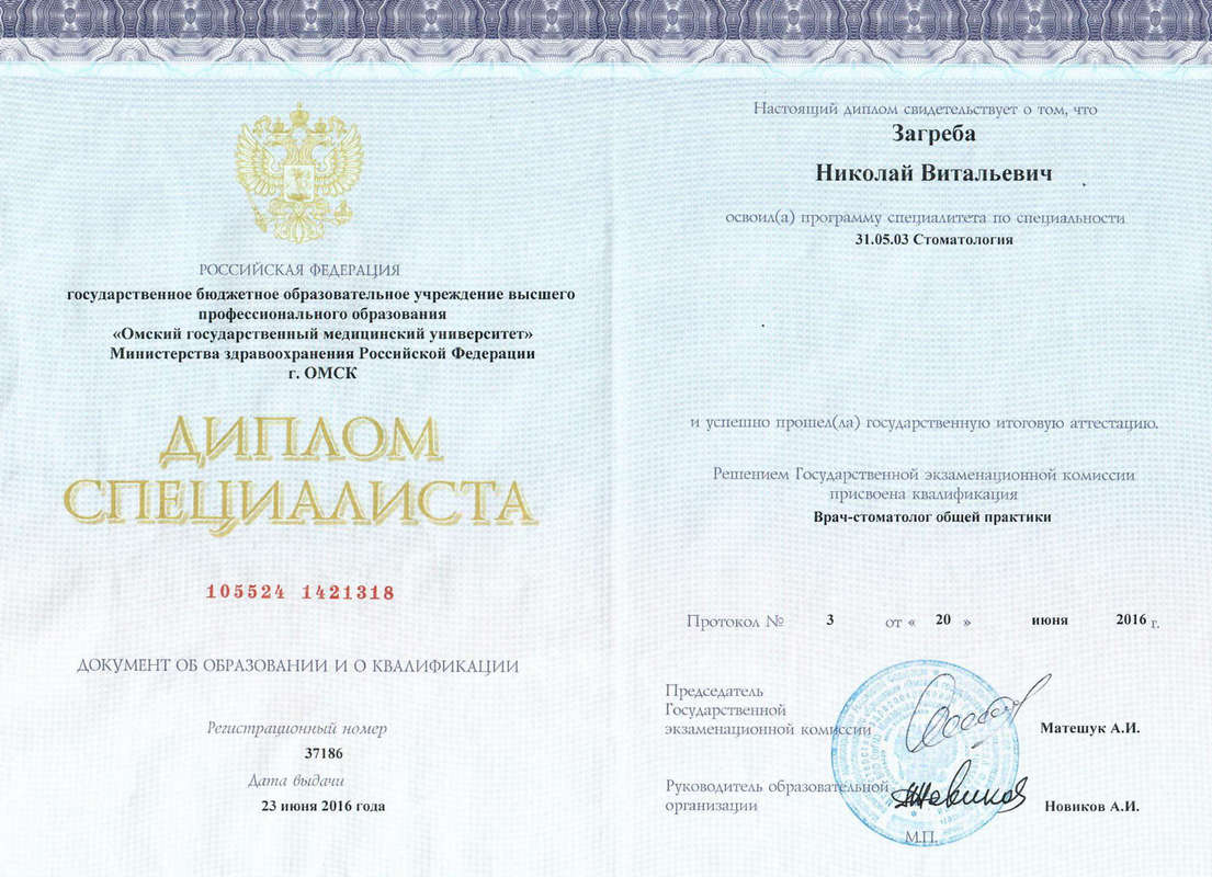 - Окончил Омский Государственный Медицинский Университет по специальности стоматология общей практики;2016стоматология общей практики2016
