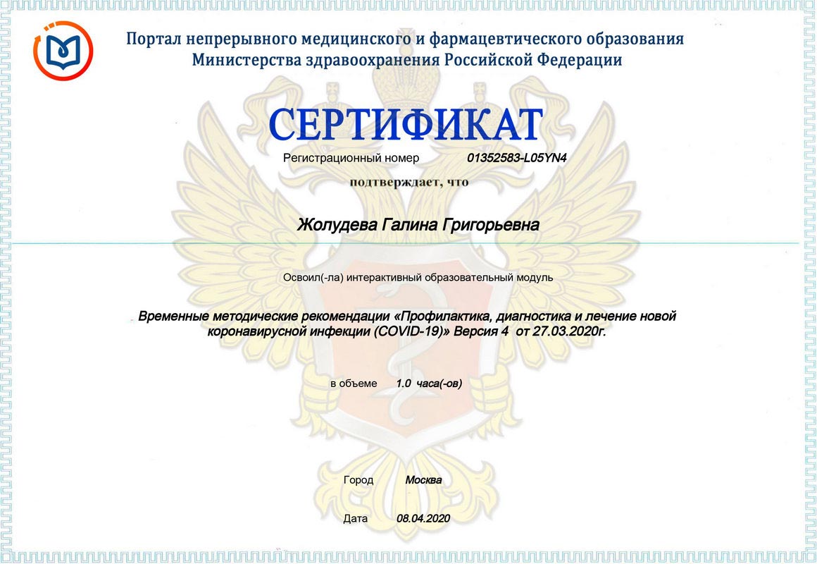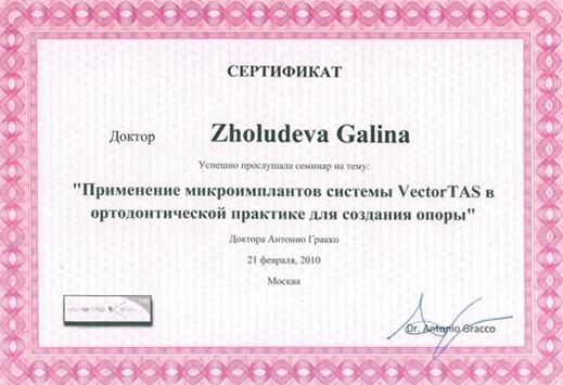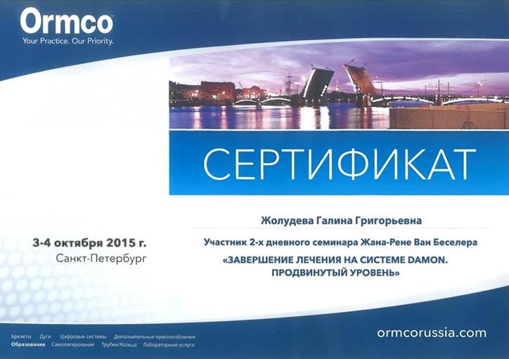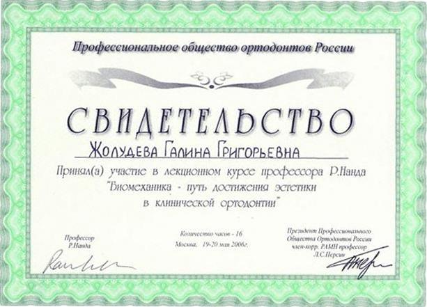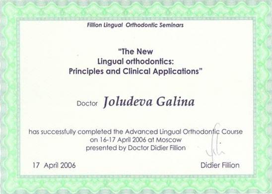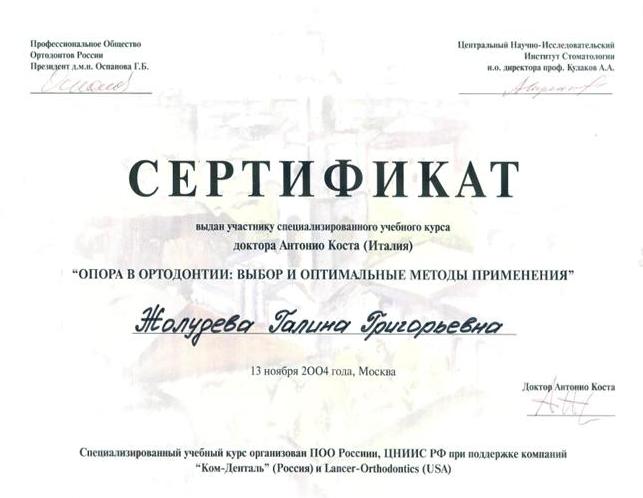 Сертификат по специальности Ортодонтия»
